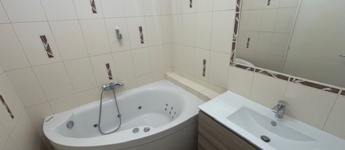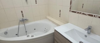 Mindkét szinten helyet kapott fürdőszoba, a földszinten zuhanyzó, az emeleten pezsgőkád került beépítésre.