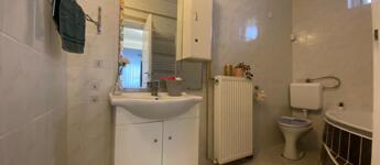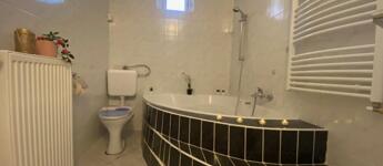 A fürdőszoba ablakos, sarokkádas, WC-vel egyben kialakított.