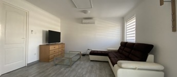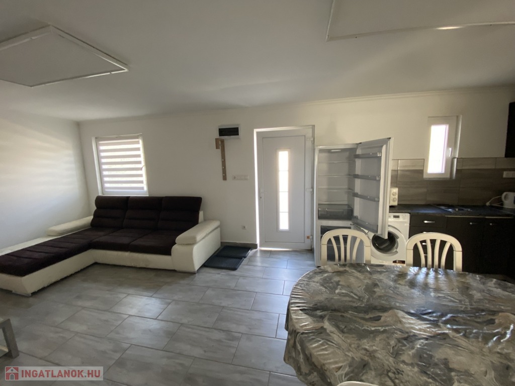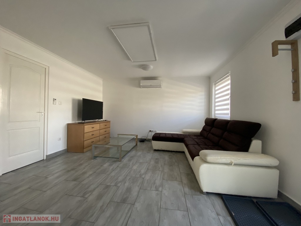 Az ingatlan központi eleme a tágas nappali, amely otthonos hangulatával tökéletes helyszín a kikapcsolódásra vagy a családi összejövetelekre.