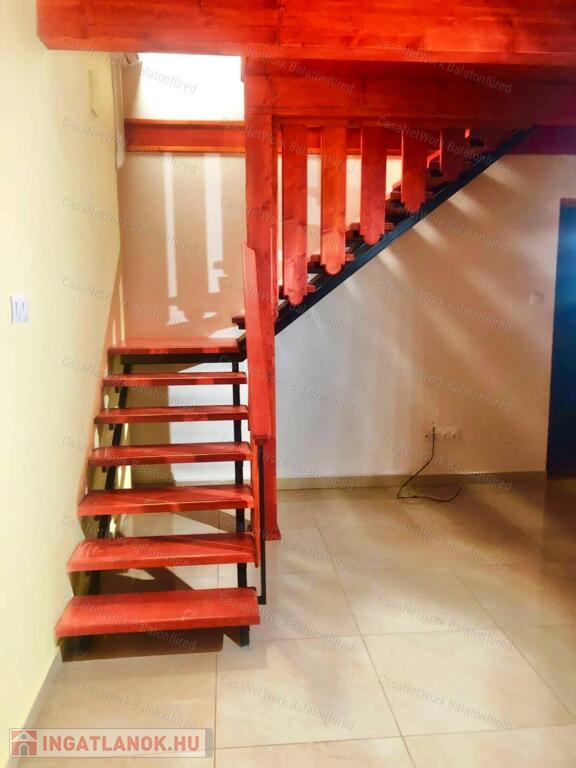 - földszinten 1 hálószoba, nappali, konyha étkező, fürdő zuhanyfülkével WC, kazánház és feljáró a felső szintre