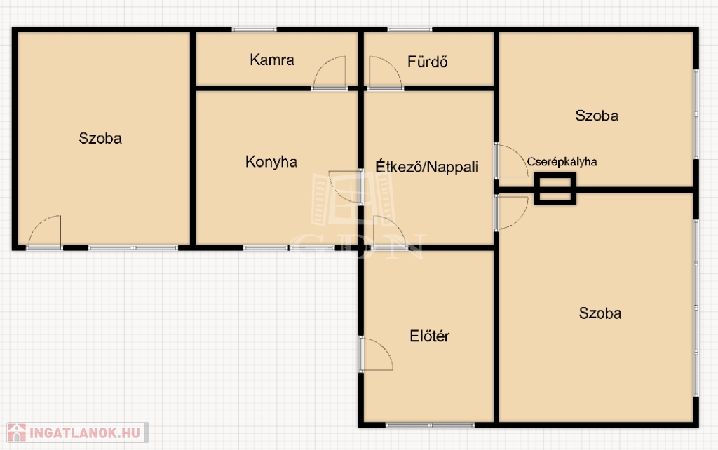 A tégla építésű, 79 m²-es lakóházban minden szükséges helyiség megtalálható: két tágas szoba, egy kis nappali, konyha, fürdőszoba, szélfogó és kamra várja leendő tulajdonosát. Az INGATLAN egyik KÜLÖNLEGESSÉGE a külön bejáratú tároló helyiség, amely akár plusz szobának is ÁTALAKÍTHATÓ. A fűtést egy hagyományos cserépkályha biztosítja, a közművek pedig teljeskörűen be vannak vezetve - bár a mérőórák jelenleg hiányoznak, így ezek telepítését új tulajdonosának kell elvégeznie. A cserepes tető és az újonnan cserélt csatorna pozitívuma a háznak.