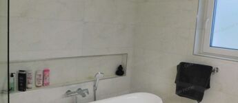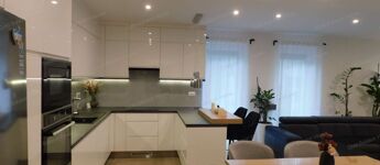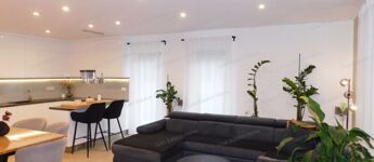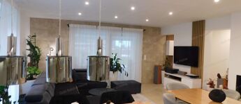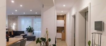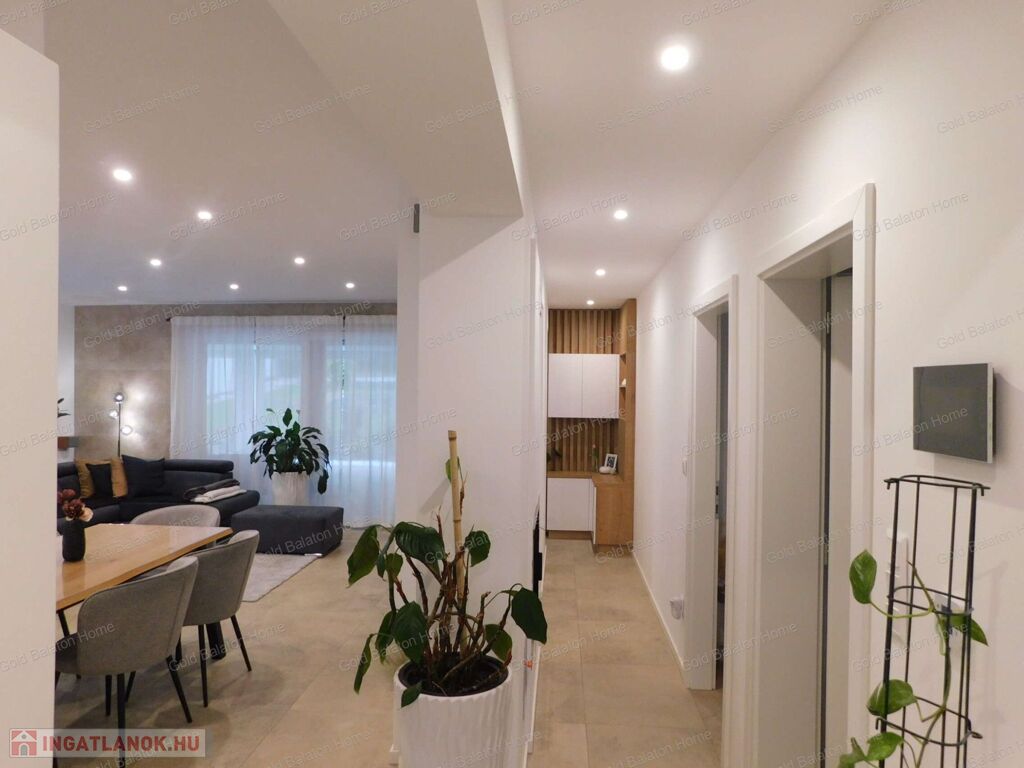- helyiségek: szélfogó, közlekedő, 2 hálószoba, amerikai-konyhás nappali, fürdőszoba zuhanyzóval és WC-vel, fürdőszoba káddal és zuhanyzóval, külön WC, háztartási helyiség, közlekedő, előtér - belépő