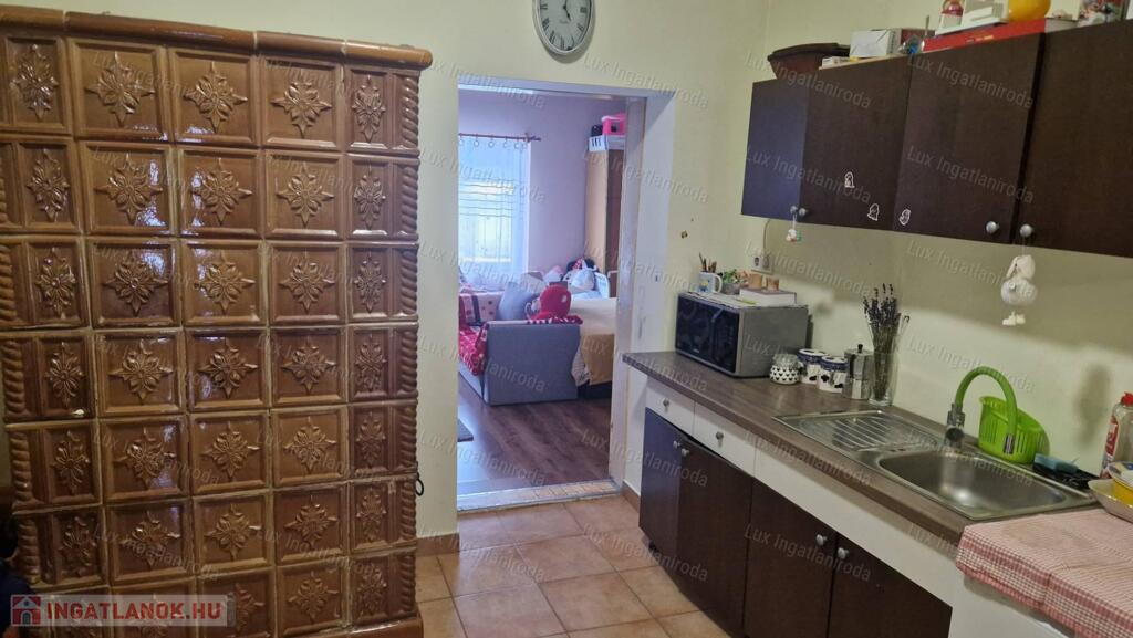 Jelenleg cserépkályha fűtésű, gáz az udvaron belül található.