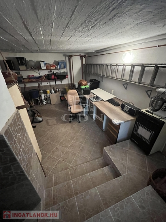 - Két hálószoba, nappali, előszoba, konyha-étkező és fürdő Wc-vel alkotja a földszintet, továbbá a kazánház és a garázs is itt található, a kazánházból lemehetünk egy járólapozott pincébe