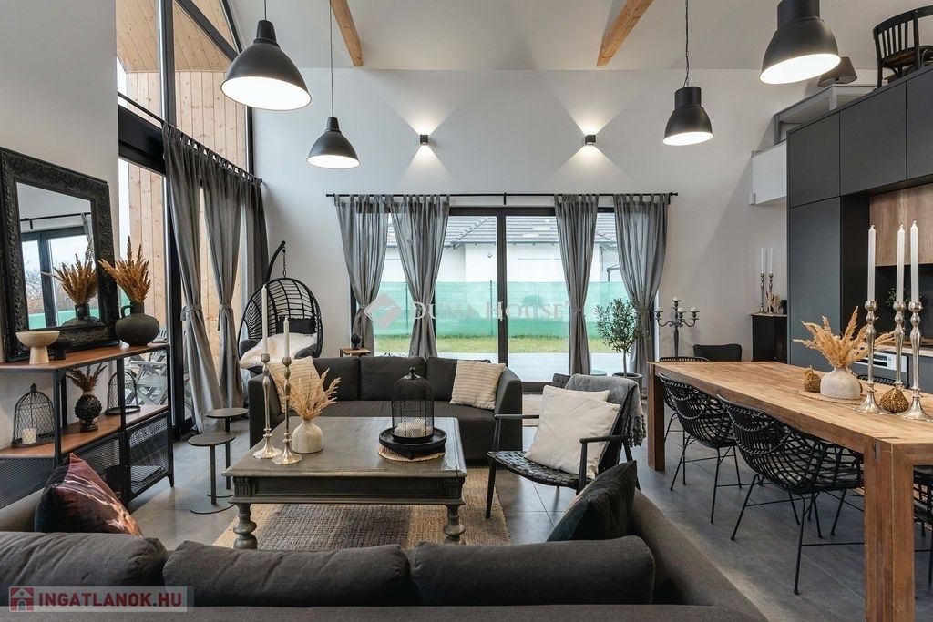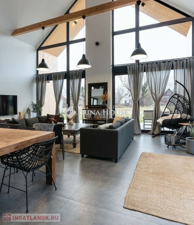 ELADÓ egy napfényes, ÚJONNAN ÉPÜLT, 154 nm-es családi ház/nyaraló a Balaton déli partján, amely kivételes lehetőséget kínál mindazok számára, akik modern, jól felszerelt OTTHONra vágynak, emellett értékelik a MINŐSÉGet.A kétszintes ingatlan nettó 107 négyzetméter alapterületű. Elosztását tekintve átgondolt; világos terek jellemzik: a tágas, galériás amerikai konyha - nappali - étkezővel biztosítja a társasági élet központját, valamint a mindkét szinten megtalálható 2-2 hálószoba és 1-1 fürdőszoba wc-vel lehetővé teszik a praktikus és kényelmes életvitelt.A mai kor igényeinek megfelelően az ingatlan padlófűtése egyszerűen, távvezérelve is irányítható, így a lakók saját igényeik szerint szabályozhatják az otthonuk hőmérsékletét, így garantálva az otthon melegét és komfortját a hideg hónapokban.A galériára telepített klíma kiválóan temperálja a tágas belső teret a nyári forróságban.Az épület rendkívül gondos tervezése és kivitelezése magas minőségben, prémium anyagokból és modern technológiákkal történt, így garantálva a kényelmet és az exkluzív életérzést.A kertkapcsolatos nappali közvetlen hozzáférést biztosít a külső terekhez: a tágas teraszokhoz, az öntözőrendszerrel ellátott udvarhoz és a grillezőhöz.Az ingatlan főbb jellemzői:- Galériás nappali- 4 hálószoba- 2 fürdőszoba-wc- Egyedi nyílászárók- Elektromos redőnyök- Prémium burkolatok és szaniterek- Bosch beépített gépek- Padlófűtés- Klíma- 3-fázisú villamos hálózat, H-tarifa- 2 nagy terasz- Grillező- Fúrt kútAz épület szerkezete:- Porotherm 30 X-therm Rapid Dryfix tégla falazat + 5 cm. hőszigetelő vakolat + ragasztott gipszkarton- Tetőn 25 cm hőszigetelésA ház csendes, nyugodt utcában található. A vízpart -szabadstrand- egy rövid sétára (400 méterre) található.Ez az egyedileg tervezett és kivitelezett ingatlan ideális választás családok, párok otthonának vagy nyaralójának;továbbá ajánjuk BEFEKTETÉSI CÉLRA, hiszen a számos és egyre népszerűbb Balaton-parti programokra, rendezvényekre ellátogatók számára téli-nyári szálláshelyül, lány- legénybúcsú- vagy más partyk helyszínül szolgálhat.Bővebb információért, teljes műszaki tartalomért, személyes megtekintésért kérem keressen elérhetőségeimen!