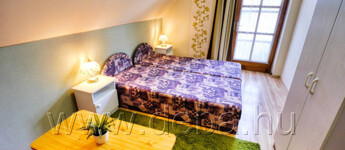 Tetőtér: Étkező, 2 apartman: 2x2 szoba, toronyszoba, 2 fürdőszoba + WC, 2 teakonyha, 2 erkély, lépcsőház.