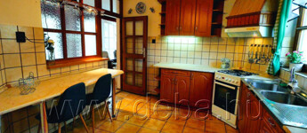 Földszint: Nappali - étkező, 2 szoba, toronyszoba, egy szinttel lejjebb a toronyszobához tartozó – bárpult, + zuhanyozó, WC), konyha, kamra, fürdőszoba, WC, lépcsőház, félkör alakú terasz (22 nm), fedett kerti pavilon, kemence.