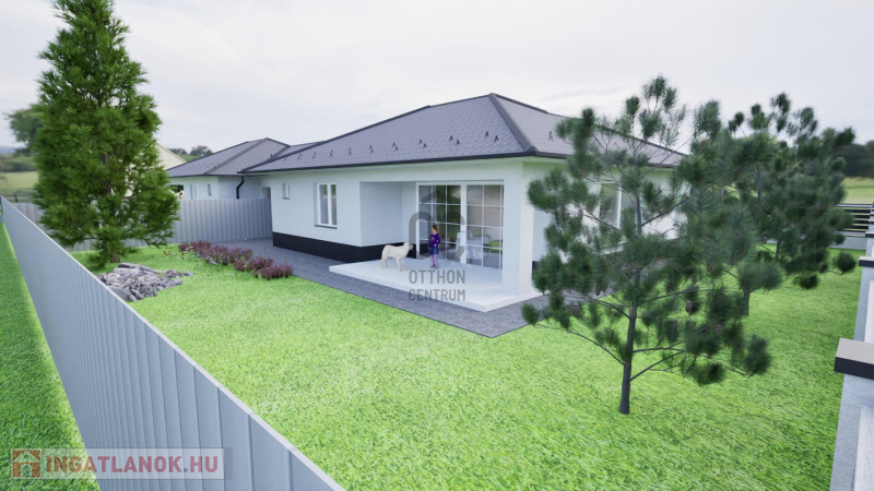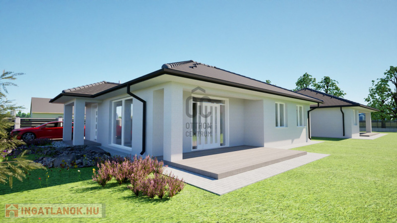 földszintes ikerház, intim, önálló bejáró, nagy kert, 4 hálószoba, őszi átadással