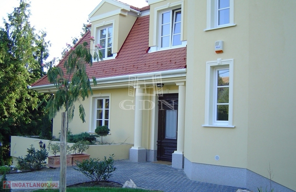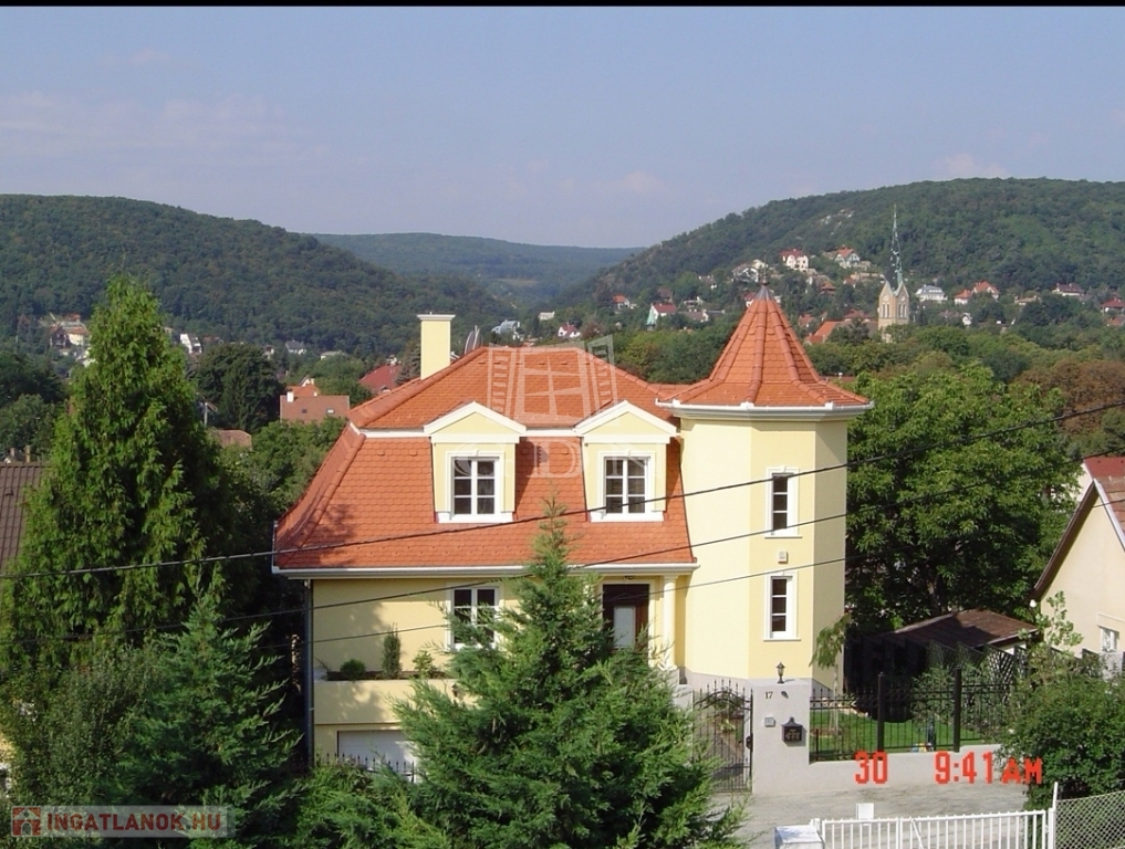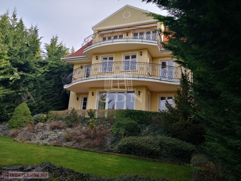 A 730 nm-es telken álló 350 nm-es, 4 szintes, 5 szobás, belső úszómedencés, déli tájolású villaépület klasszikus stílusban épült és minden szintjéről kivételes panoráma nyílik. Az épület 18 éve készült el és azóta is folyamatosan, precízen karbantartott. Az igényesen kialakított, automata öntözőrendszerrel ellátott, gondozott kert mind a négy oldalról hatalmas növényekkel határolt, intim kialakítású.