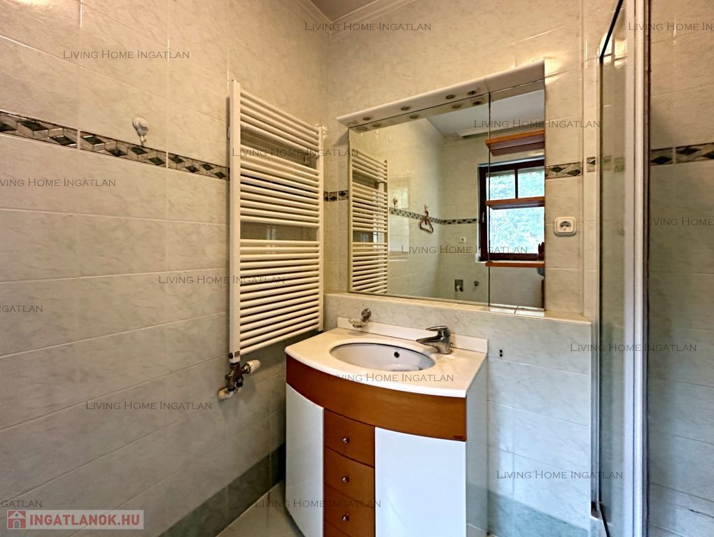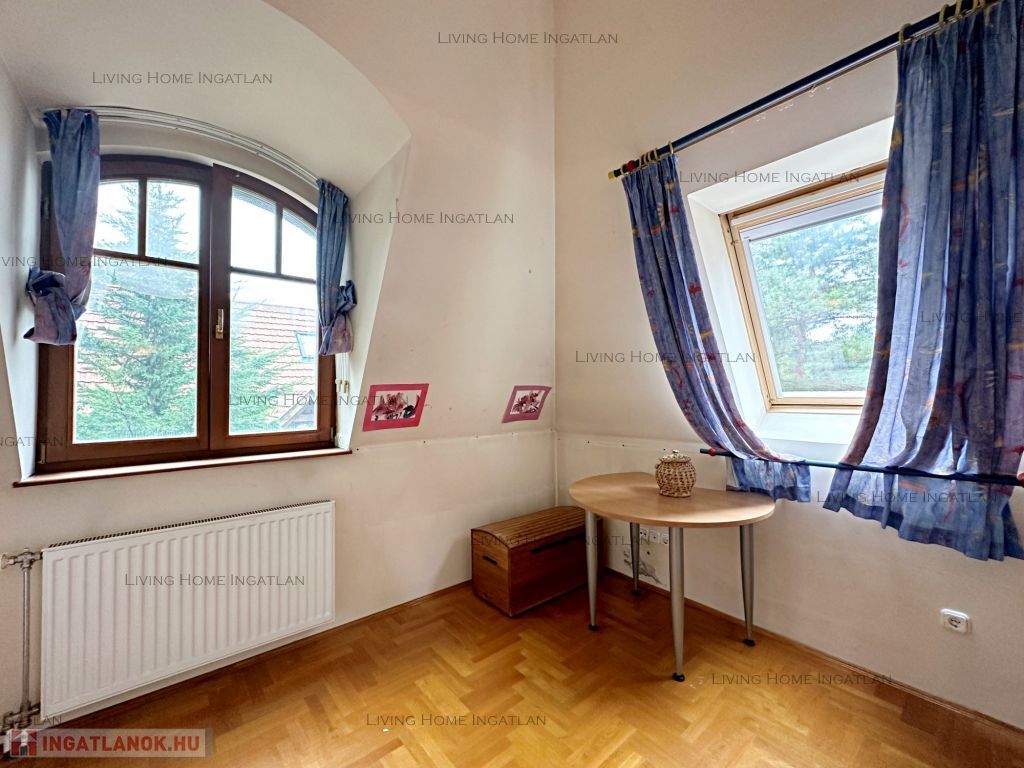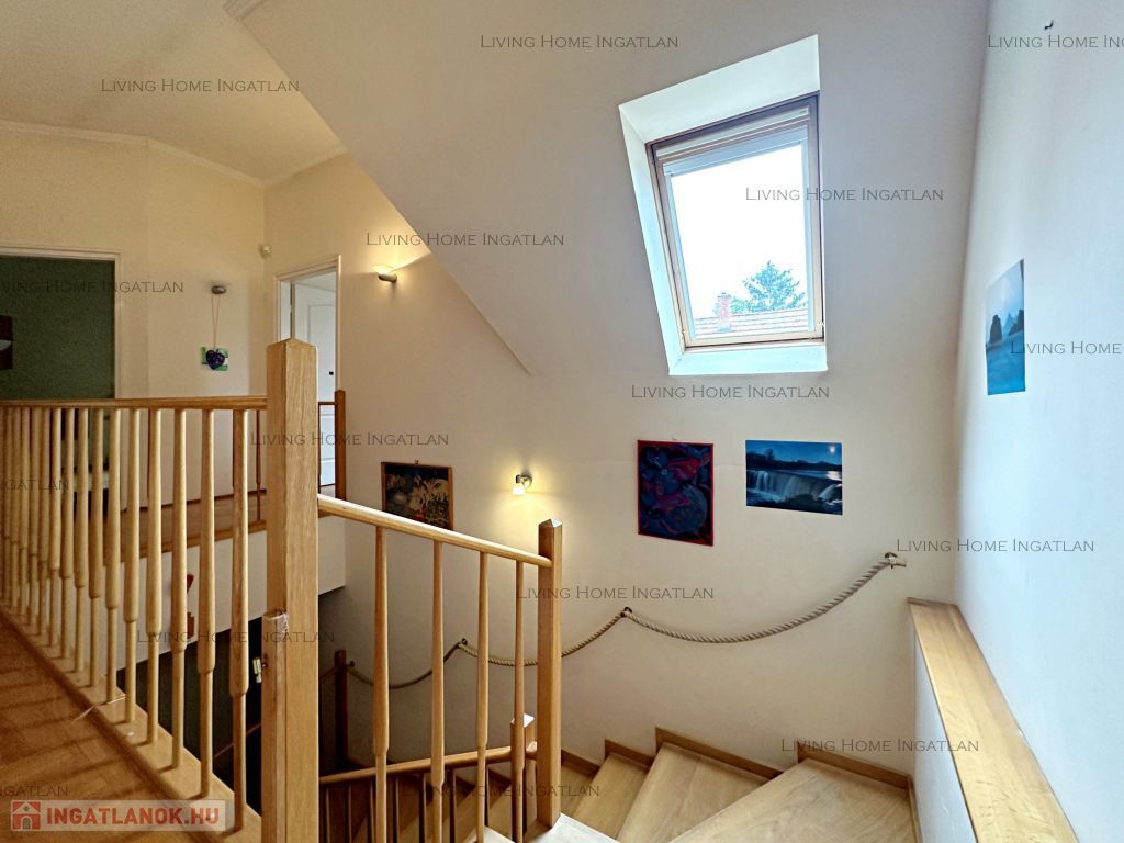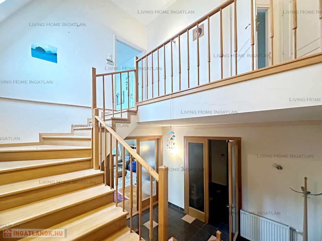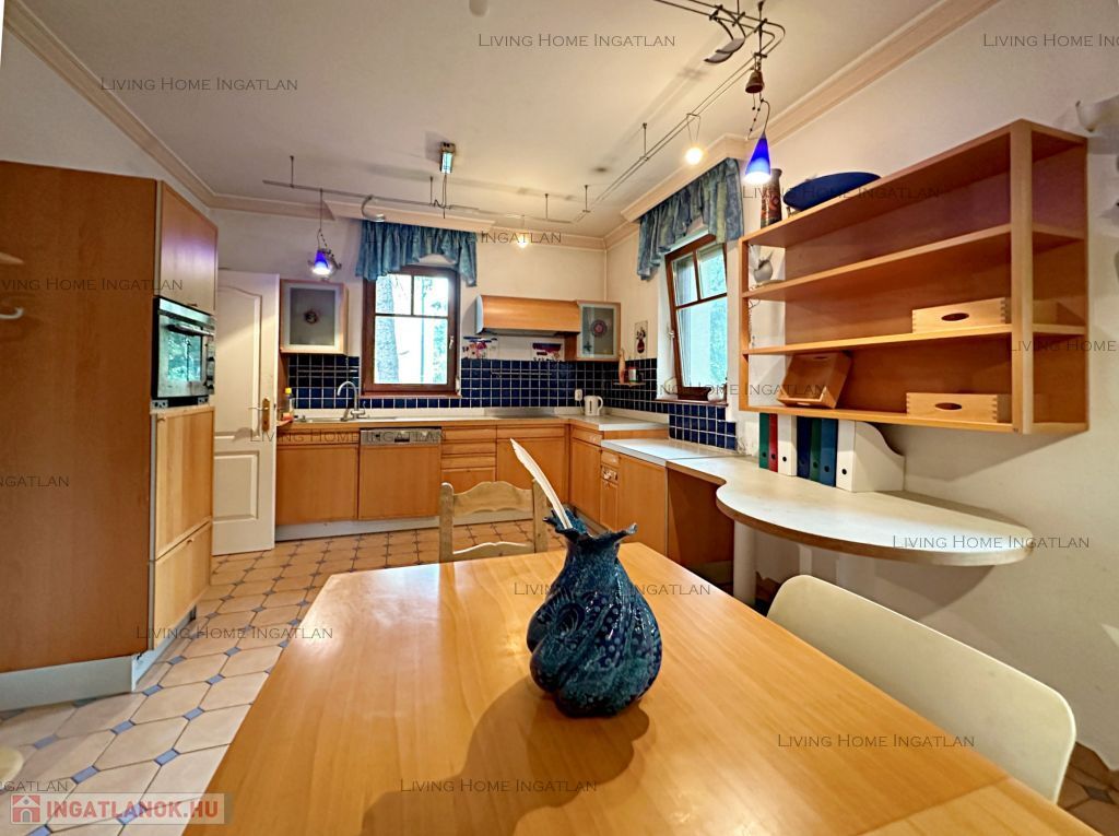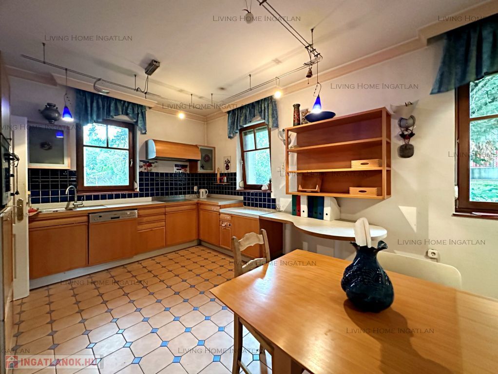 Csendes, családi házas környezetben, közel a természethez eladó egy 270 nm-es lakóterű önálló családi ház. A teljes alsó szint ebben a négyzetméterben nincs benne. Az ingatlan alkalmas akár vállalkozás telephelyének is, hiszen az udvaron több gépkocsi is kényelmesen parkolhat. A házban egyébként egy jóga-stúdió működött, kihasználva az alsó szint lehetőségeit. A 716 nm-es parkosított, nagy fákkal körülvett kert és a magasabban lévő terasz kellemes, nyugalmas helyet biztosít a pihenésre, baráti összejövetelekre.