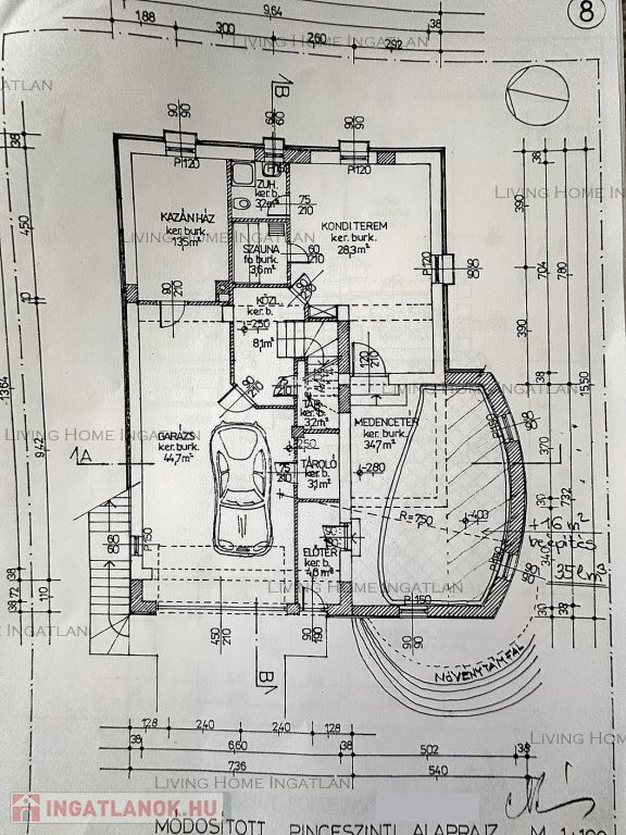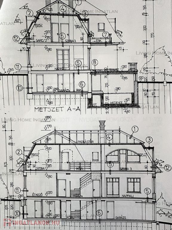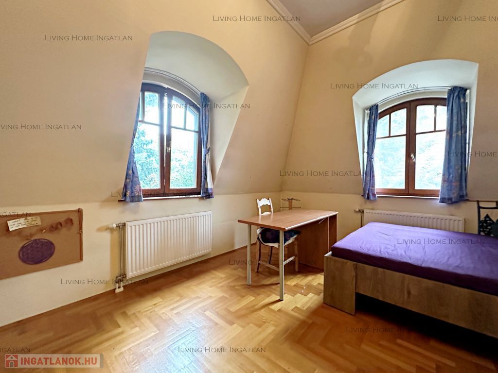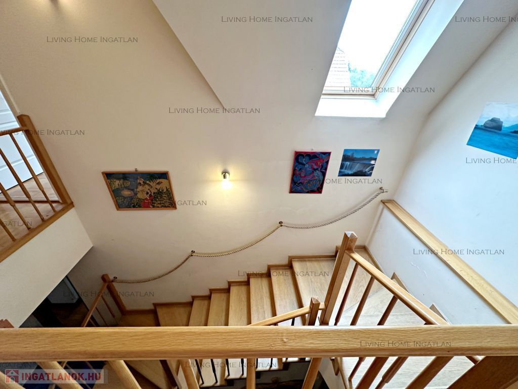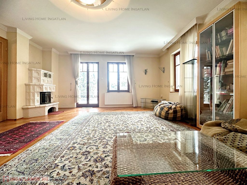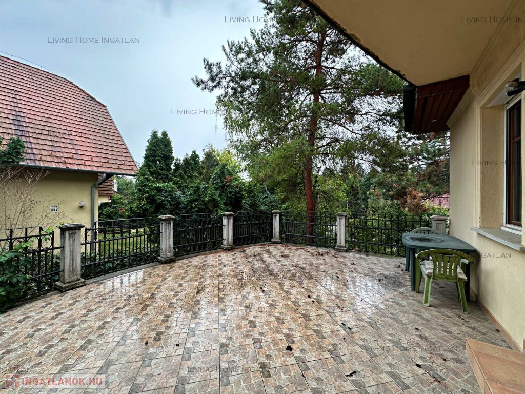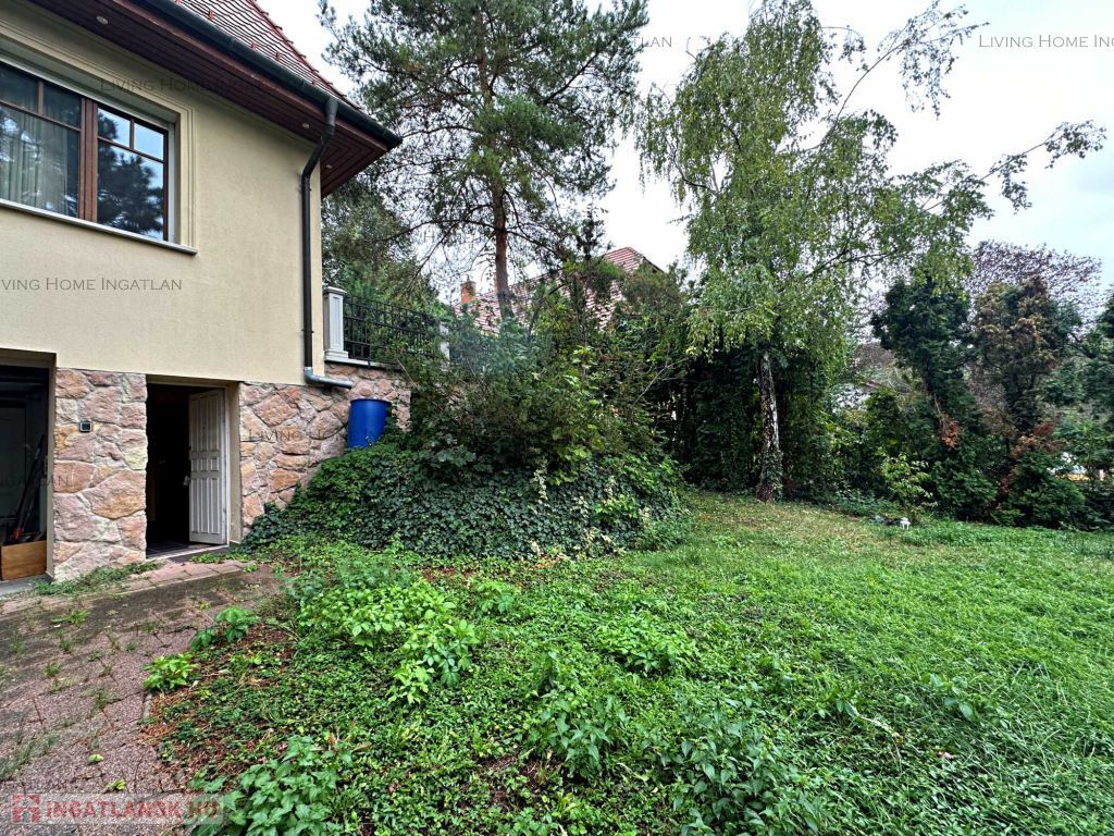 A detached house of 270 sqm for sale in a quiet, family house environment, close to nature. The entire lower floor is not included in this square meter. The property is also suitable as a business premises, as the yard can comfortably park several cars. A yoga studio used to operate in the house, taking advantage of the lower floor. The 716 sqm landscaped garden surrounded by large trees and the terrace on the higher level provide a pleasant, peaceful place for relaxation and gatherings of friends.