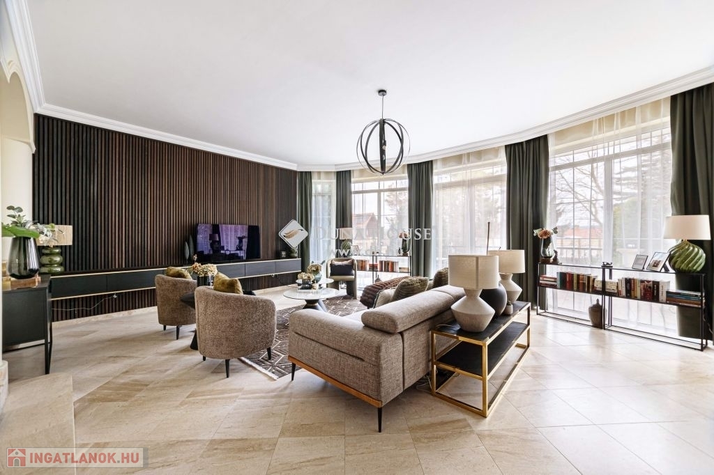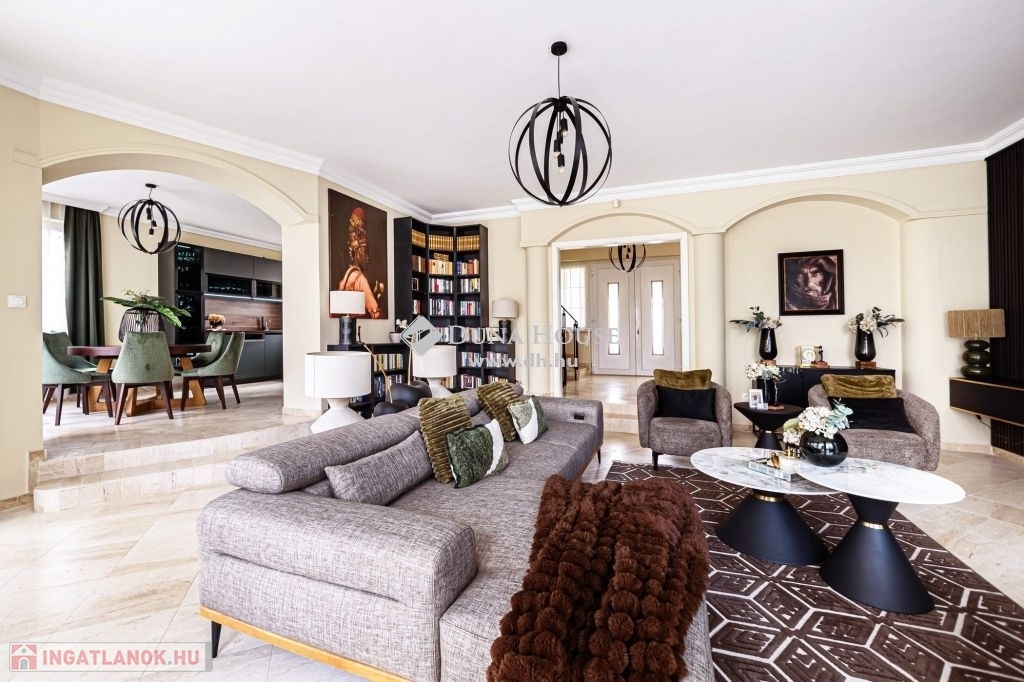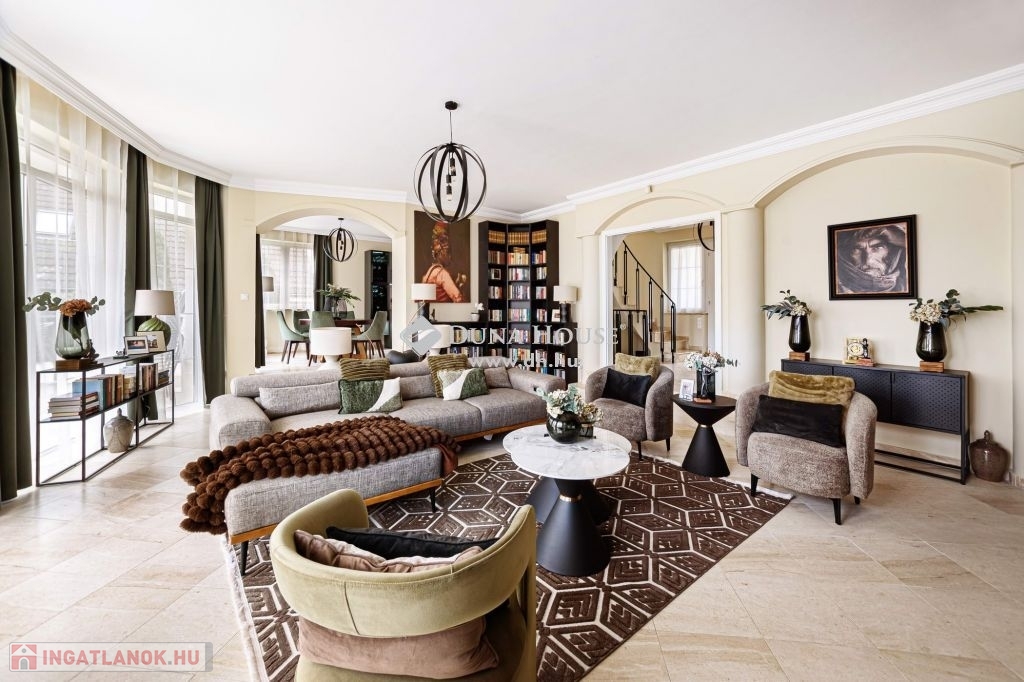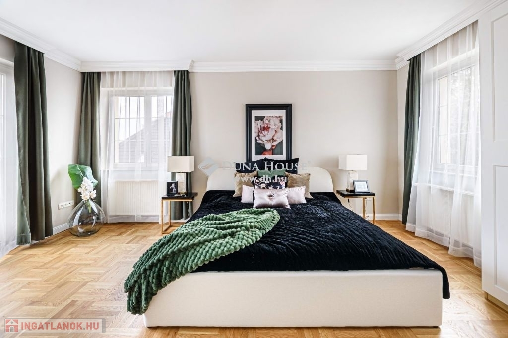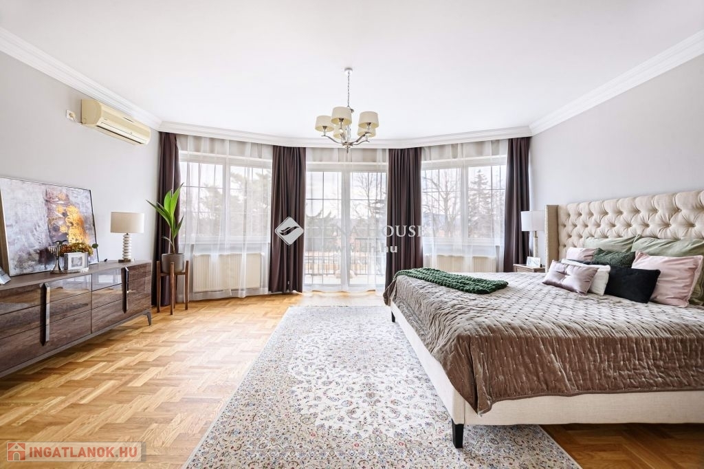 Attention, lovers of classic art deco style! For those who love beautiful, stylish, clean elegance, I offer a beautiful, renovated family house with livable dimensions, equipped with an outdoor pool, in the close vicinity of the French school and the American school. I recommend this exceptional property to those who appreciate quality, spacious spaces and want to live in a quiet, yet central location in Budapest. Do not miss this unique opportunity to own such a beautiful home! The unique combination of the surrounding green areas and the suburban atmosphere makes this place ideal for all those who appreciate peace and closeness to nature in addition to city life. The house overlooks a fabulous garden, where peace and closeness to nature can be enjoyed at all times of the year. The interior is spacious and bright, a perfect place to create a home or even for generations to live together. The design and location of the property allow you to enjoy natural light all day long, which brings a positive atmosphere to every corner of the home. The house is heated by a modern gas central heating and fan-coil system, so residents can enjoy pleasant temperatures all year round. The property has 4 full bedrooms, triple bathrooms, several terraces, a swimming pool, a double garage, a living room with an American kitchen, and other service areas.