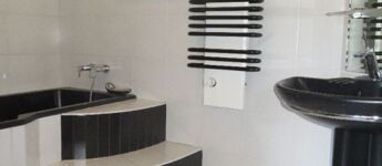 * Emelet 60 m2: kis nappali + 2 lakosztály háló-dolgozó-beépített szekrényekkel, az egyik hálóhoz zuhanyozós fürdőszoba, a másik hálóhoz kádas fürdőszoba tartozik.; belmagasság: 2.63 m