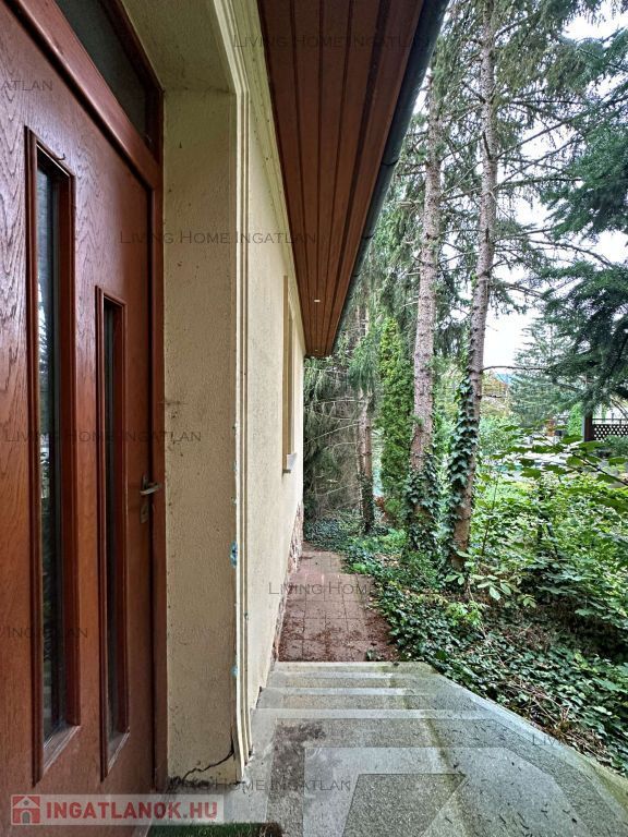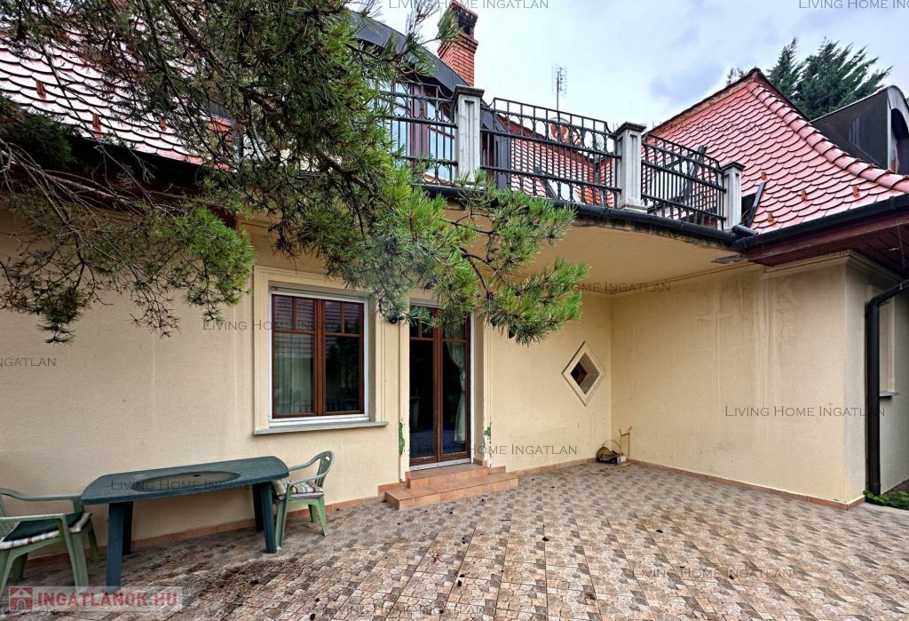 A detached house of 270 sqm for sale in a quiet, family house environment, close to nature. The entire lower floor is not included in this square meter. The property is also suitable as a business premises, as the yard can comfortably park several cars. A yoga studio used to operate in the house, taking advantage of the lower floor. The 716 sqm landscaped garden surrounded by large trees and the terrace on the higher level provide a pleasant, peaceful place for relaxation and gatherings of friends.