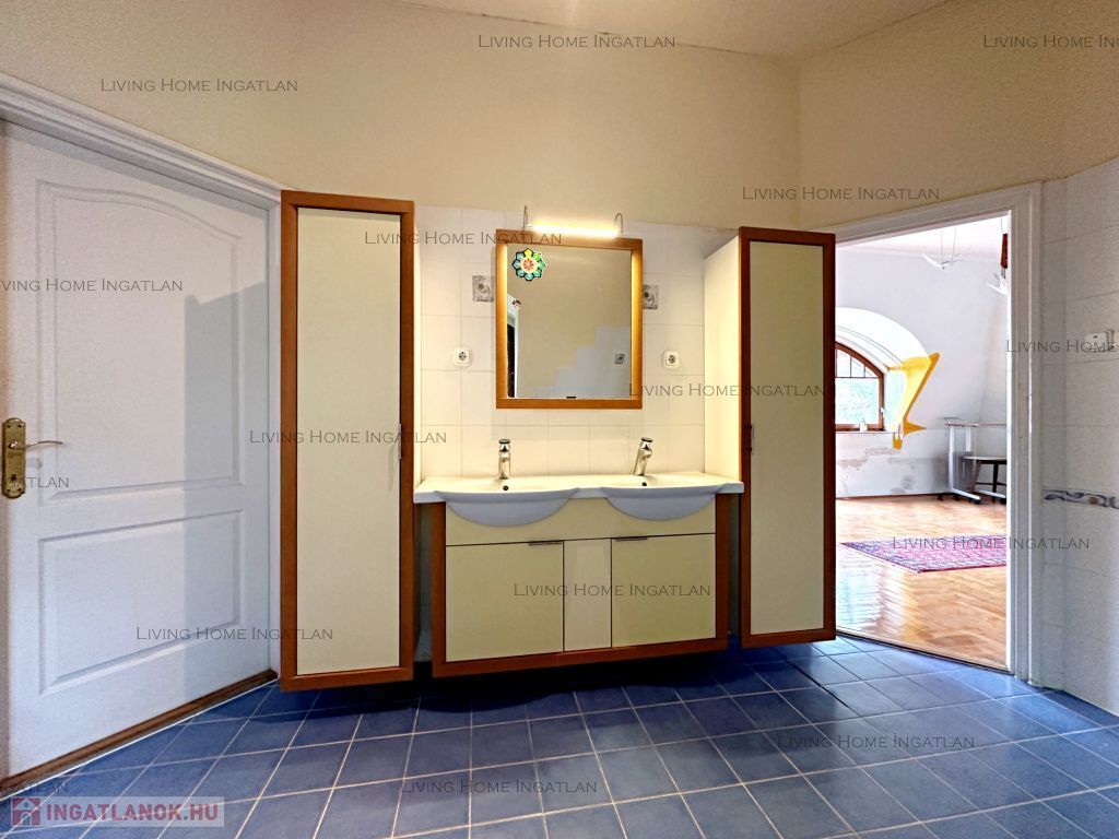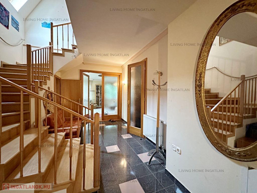 Csendes, családi házas környezetben, közel a természethez eladó egy 270 nm-es lakóterű önálló családi ház. A teljes alsó szint ebben a négyzetméterben nincs benne. Az ingatlan alkalmas akár vállalkozás telephelyének is, hiszen az udvaron több gépkocsi is kényelmesen parkolhat. A házban egyébként egy jóga-stúdió működött, kihasználva az alsó szint lehetőségeit. A 716 nm-es parkosított, nagy fákkal körülvett kert és a magasabban lévő terasz kellemes, nyugalmas helyet biztosít a pihenésre, baráti összejövetelekre.