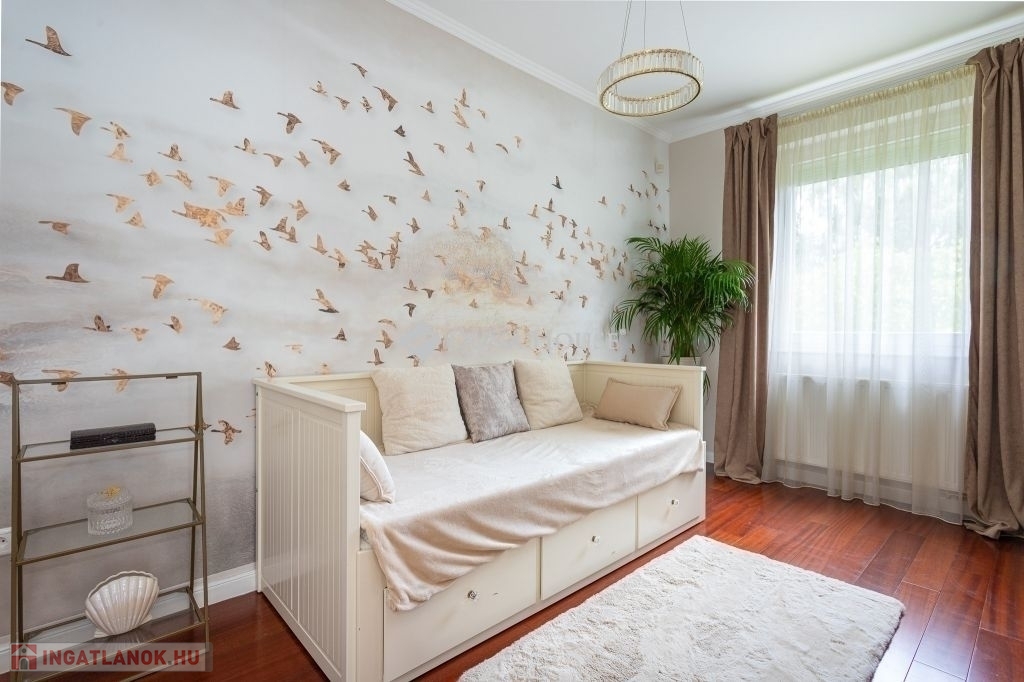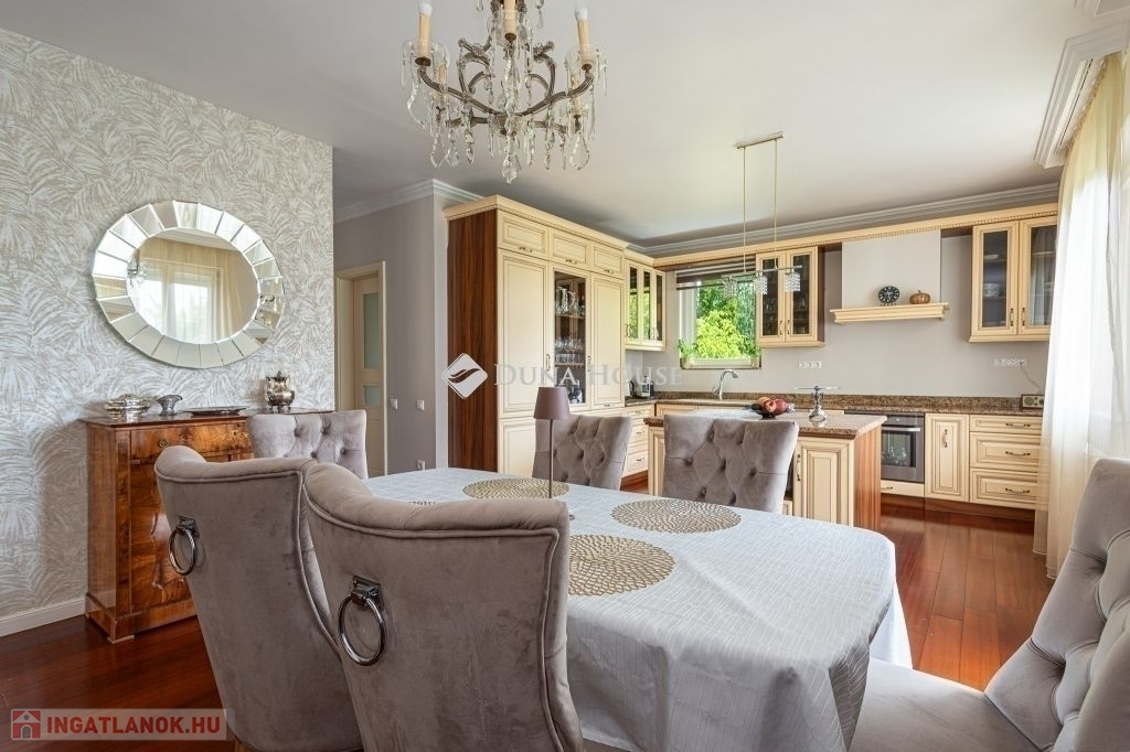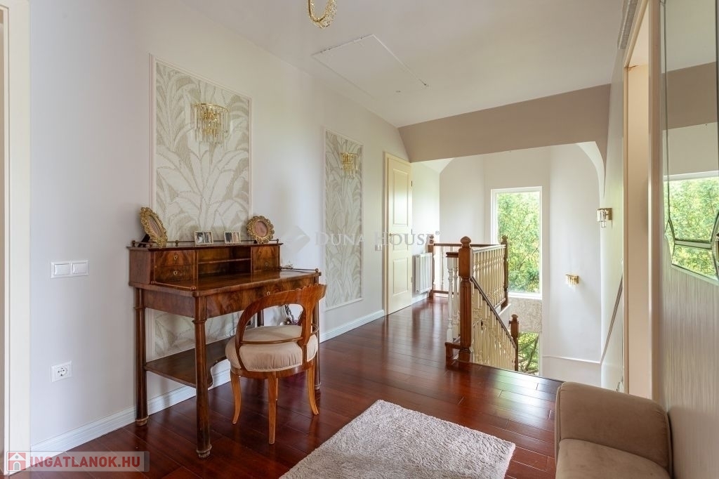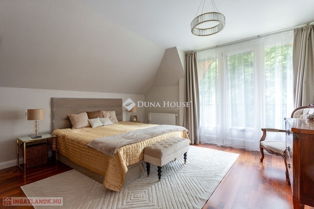 Exkluzív családi otthon Budaligeten panorámával és prémium minőséggelBudaliget egyik legnívósabb részén, a francia iskola közelében kínálunk eladásra egy páratlan adottságokkal rendelkező, minden igényt kielégítő családi házat.Az ingatlan csendes, zöldövezeti környezetben, erdő mellett helyezkedik el, ahonnan lenyűgöző panoráma nyílik a környező hegyekre. A gondosan megtervezett elrendezésnek és a hatalmas üvegfelületeknek köszönhetően a ház minden szeglete világos, tágas és otthonos.Főbb jellemzők:- nappali + amerikai konyha közvetlen kertkapcsolattal- 6 hálószoba, 4 fürdőszoba, több gardrób- vendégszoba, dolgozó vagy külön lakrész kialakításának lehetősége- alsó szint külön bejárattal ideális vállalkozásra vagy kétgenerációs megoldásra- minőségi burkolatok és prémium anyagok mindenholExtra felszereltség:- kondenzációs gázkazán, kandalló, Daikin klíma- elektromos redőny, szúnyogháló, biztonsági bejárati ajtók- riasztórendszer, automata garázskapu és kertkapu- fedett és nyitott kocsibeálló, garázs- gondozott kert automata öntözőrendszerrelEz az ingatlan tökéletes választás mindazoknak, akik szeretnének egy exkluzív, mégis nyugodt környezetben élni, miközben élvezhetik Budapest egyik legszebb városrészének minden előnyét.