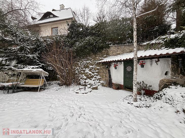 A kertben található egy 12 négyzetméteres téli kert és halastó is!