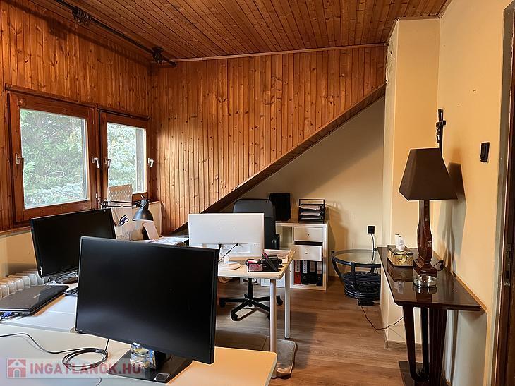 Az ingatlan az 1987-ben épült, jelenlegi elosztása 3 szobából, konyhából és 2 fürdőszobából áll. Ebből az alsó szinten 1 szoba, konyha és fürdőszoba található, míg az emeleten a másik 2 szoba és egy fürdőszoba található, illetve feljáró a padlástérbe.