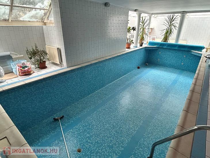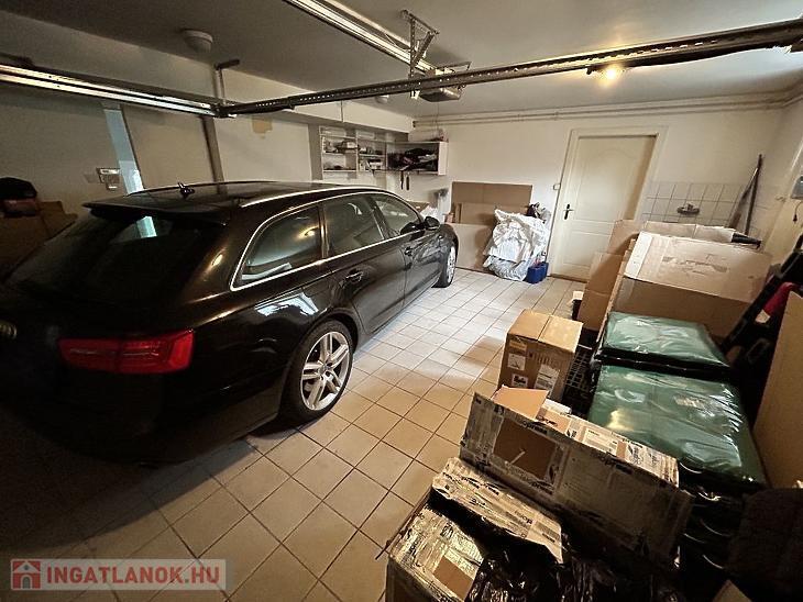 A pince szinten található egy beltéri, fűthető medence és egy dupla beállásos garázs. A garázs előtti autóbeálló kettő autó parkolására alkalmas. Illetve az utcán kialakításra került 4 db autóbálló hely.