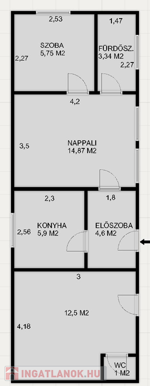 Az udvarban 3 lakás található, közös kapubejáróval, telekmegosztási szerződéssel rendelkezik.
