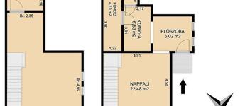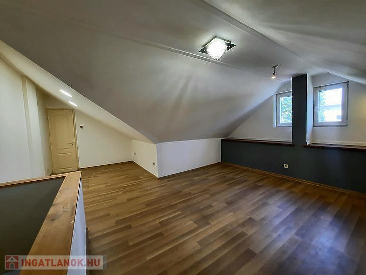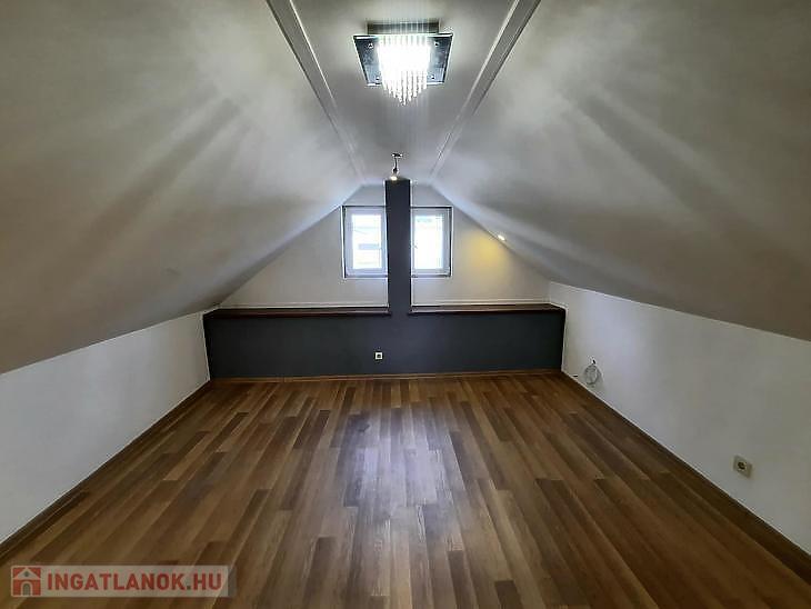 A földszinti részen konyha, szoba, kamra, kádas fürdőszoba és előszoba van, az emeleten egy szoba került kialakításra, de egy mosdó kialakítására van még lehetőség. Kb. 8 éve lett cserélték a tetőt, a villanyvezetékeket, a bejárati ajtót és az emeleti részen található nyílászárókat. A fűtést gázkonvektor biztosítja, a meleg vizet pedig villanybojler. Tartozik a házrészhez egy 100 m2 közvetlen kertkapcsolat és autóbeálló.