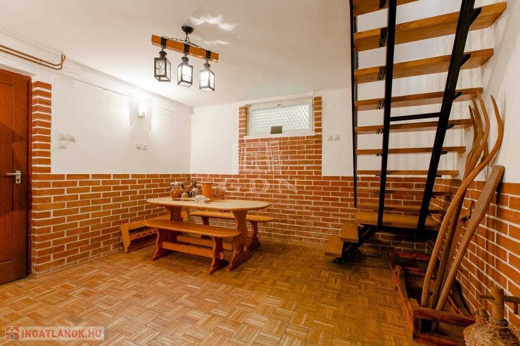 - Pinceszint: igazi különlegesség — egy borozó jellegű társalgó, tárolók és a gépészet kapott helyet.