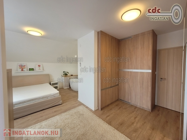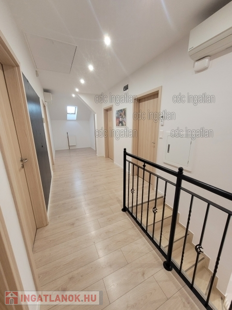 XVII. kerületben, Akadémiaújtelepen eladó egy frissen felújított, 2 szintes, 300 m2-es luxusingatlan, ami egy 540 m2-es telken található. A ház földszintjén az előszobából nyílik egy vendégmosdó, egy zuhanyzós fürdőszoba WC-vel. Itt lett kialakítva a mosó – szárító egység. Ezen a szinten található a konyha és spájz, valamint étkező és egy fatüzelésű kandalló. A konyhai, minőségi, beépített gépeket a vételár tartalmazza. A nappali 30 m2-es, kertre néző panorámával rendelkezik. Továbbiakban kialakításra került egy 20 m2-es szoba, ami vendégszobának vagy fitneszteremnek is használható, illetve funkcionálhat gardróbszobaként is. A ház emeleti szintjén 6 hálószoba került kialakításra. A szülői hálóban Wellis szabadonálló kád saját mosdóval és WC-vel, valamint beépített gardróbszekrénnyel rendelkezik. A ház pinceszintje a földszinti előszobából nyílik. Itt egy wellness részleg került kialakításra 5 férőhelyes jakuzzi, egy tágas infra- és finnszauna, valamint egy gőzkabinos zuhanyzó, mosdó. Kazánhelyiség is elhelyezésre került a pinceszinten. A ház minden nyílászárója műanyag, az ablakokon alumínium redőny található. A házban mozgásérzékelők, riasztó- és kamerarendszer is működik. A kapuk távirányítóval és okos rendszerrel telefonról is nyithatóak. A melegvíz ellátást és fűtést cirkókazán biztosítja. A parkolás 2 gépjármű befogadására alkalmas garázsban lehetséges, ami elektromos garázskapuval rendelkezik.