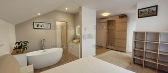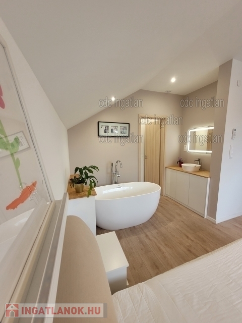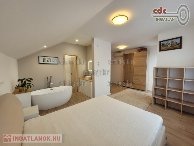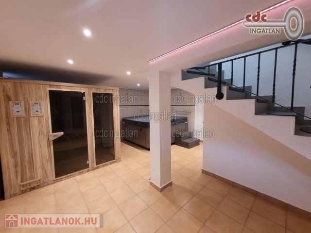 XVII. kerületben, Akadémiaújtelepen eladó egy frissen felújított, 2 szintes, 300 m2-es luxusingatlan, ami egy 540 m2-es telken található. A ház földszintjén az előszobából nyílik egy vendégmosdó, egy zuhanyzós fürdőszoba WC-vel. Itt lett kialakítva a mosó – szárító egység. Ezen a szinten található a konyha és spájz, valamint étkező és egy fatüzelésű kandalló. A konyhai, minőségi, beépített gépeket a vételár tartalmazza. A nappali 30 m2-es, kertre néző panorámával rendelkezik. Továbbiakban kialakításra került egy 20 m2-es szoba, ami vendégszobának vagy fitneszteremnek is használható, illetve funkcionálhat gardróbszobaként is. A ház emeleti szintjén 6 hálószoba került kialakításra. A szülői hálóban Wellis szabadonálló kád saját mosdóval és WC-vel, valamint beépített gardróbszekrénnyel rendelkezik. A ház pinceszintje a földszinti előszobából nyílik. Itt egy wellness részleg került kialakításra 5 férőhelyes jakuzzi, egy tágas infra- és finnszauna, valamint egy gőzkabinos zuhanyzó, mosdó. Kazánhelyiség is elhelyezésre került a pinceszinten. A ház minden nyílászárója műanyag, az ablakokon alumínium redőny található. A házban mozgásérzékelők, riasztó- és kamerarendszer is működik. A kapuk távirányítóval és okos rendszerrel telefonról is nyithatóak. A melegvíz ellátást és fűtést cirkókazán biztosítja. A parkolás 2 gépjármű befogadására alkalmas garázsban lehetséges, ami elektromos garázskapuval rendelkezik.