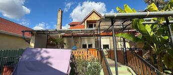 XVII. KERÜLETBEN, RÁKOSKERESZTÚRON ELADÓ EGY 181 M2-ES, 2 GENERÁCIÓS IKERHÁZ FÉL, 554 M2-ES TELEKKEL, ÉS KOCSIBEÁLLÓVAL.