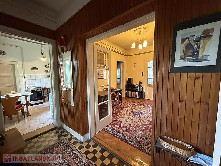 Szobák parkettával, a többi helyiség járólappal burkolt.