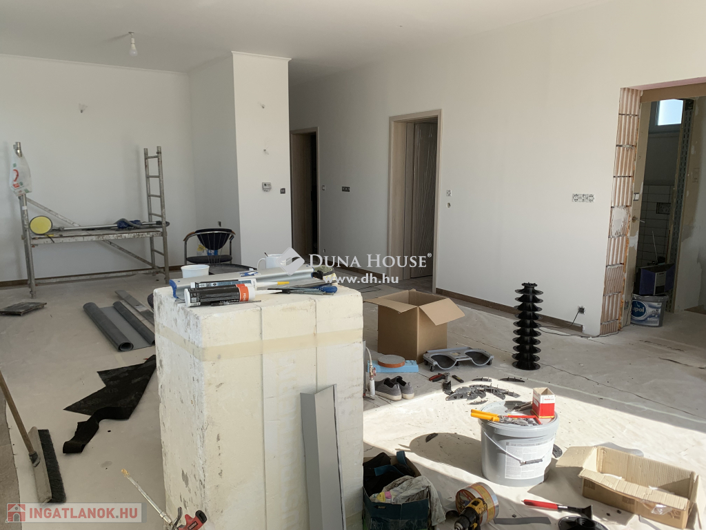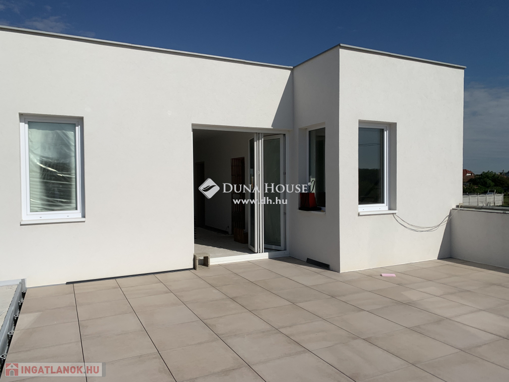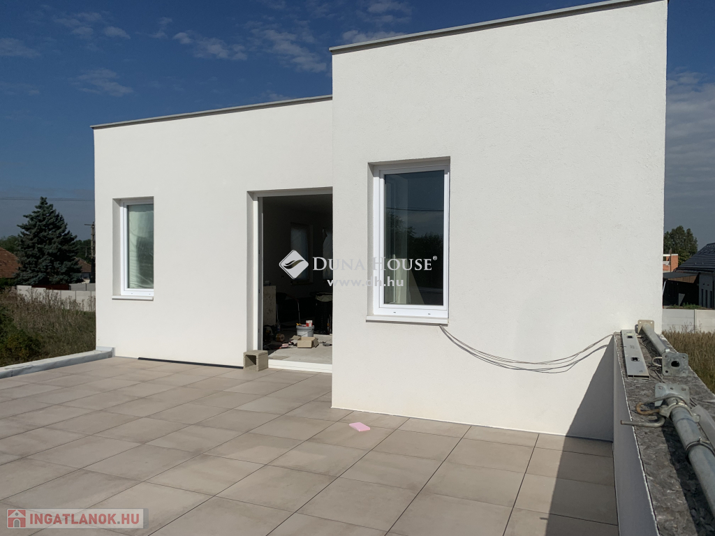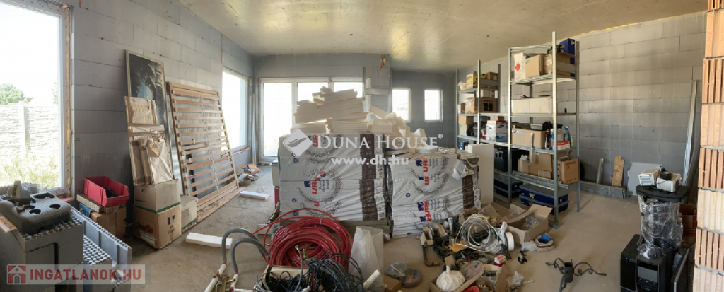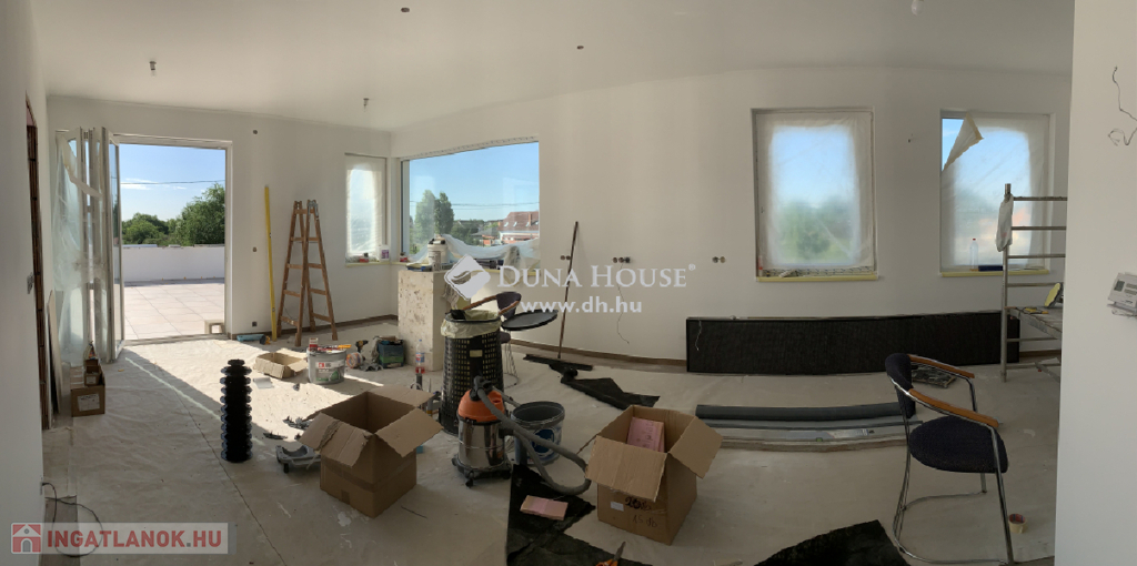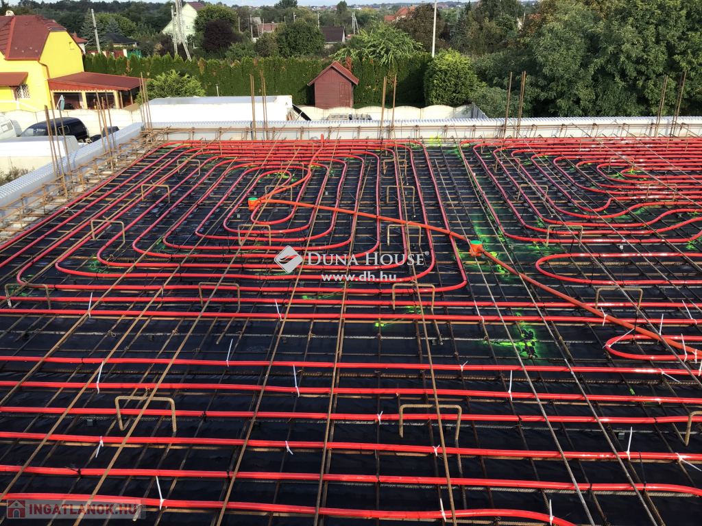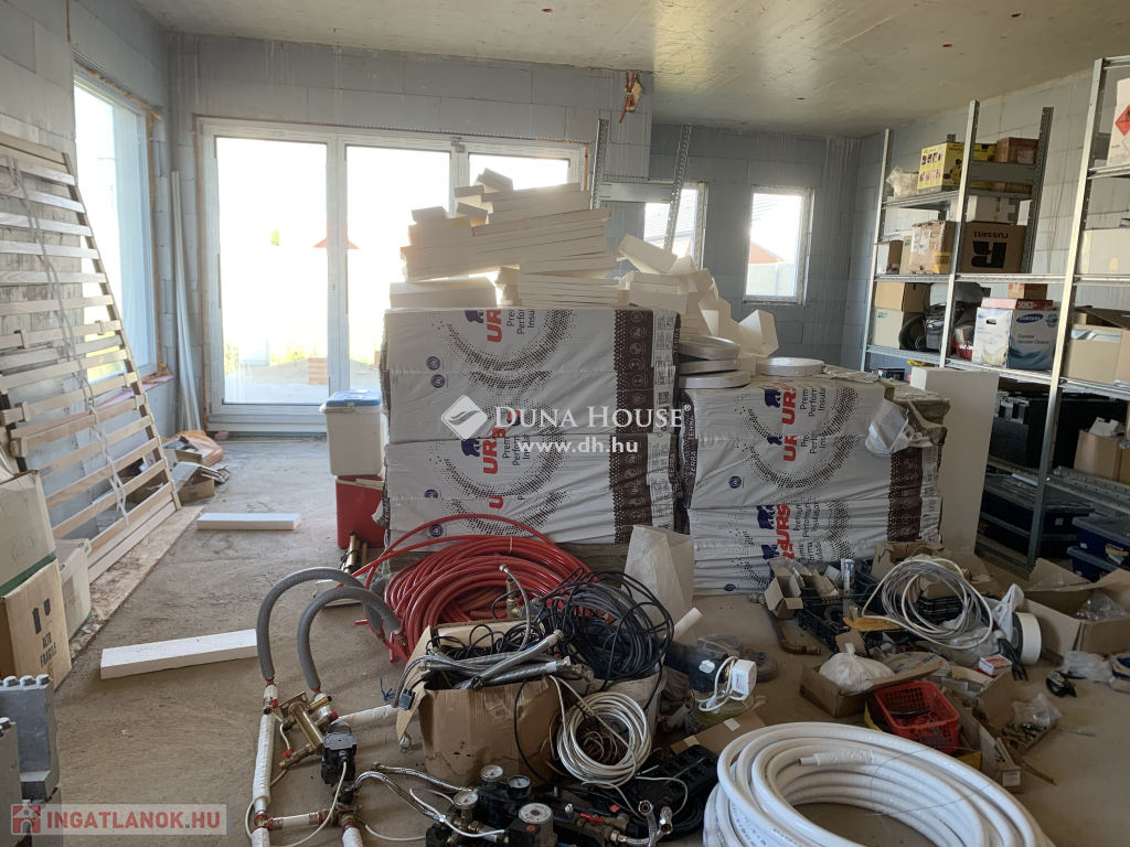 A++ os, minimál stílusú, két szintes és két lakásos ház ELADÓ!A két teljes értékű lakóegység közel 280 nm lakóteret jelent, mindkét szint nagyon jól átgondolt, a hatalmasamerikai konyhás nappali mindkét szinten terasszal végződik! A sok ablakfelületnek, a természetes fénynekés a tágas tereknek köszönhetően igazán modern érzést kelt, a mai kor elvárásainak megfelelve a legmodernebbanyagok felhasználásával készült, ezért a leendő tulajdonosok fenntartási költségei nagyon kedvezőek lesznek! Földszint: a lakótér 118,73 nm + 15,98 nm terasz + 14,98 nm gépkocsitároló ami NETTO: 126,72 nmEmelet: a lakótér 93,20 nm + 46,52 nm terasz + 37,33 nm gépkocsitároló + tároló (ingatlanon kívül) 4,72 nm ami NETTO: 116,46 nmA++ energetikai besorolást kapott, a gépészet, a hang- és hőszigetelés, valamint a nyílászárók kiválasztásaennek megfelelően történt. A teherhordó falak Porotherm 30 N+F 'okostégla' felhasználásával, míg a homlokzatifalak Thermo-Block elemekből épületek. Hőszivattyús rendszer működteti a mennyezeti hűtést, valamint apadlófűtést is. Háromrétegű, hőszigetelt üvegezésű műanyag nyílászárók kerültek beépítésre. Az emeletekközött külön figyelmet fordítottak a tökéletes hang és hőszigetelésre, így a két lakás egymástól teljesen elkülönül.Két külön bejárattal megközelíthető mindkét lakás, a teraszok ellenkező irányba néznek, így ideális választásösszeköltöző családtagok részére, akik elegendő saját teret szeretnének maguknak! Tartozik hozzá egy önállógarázs, két fedett autóbeálló, sőt saját fúrt kút is!A burkolatok 10.000 Ft/nm árig választhatóak a vételárban, a tervben szereplő konyhabútorokkal, megegyezésszerint. A két lakás kulcsrakész legkésőbb 90 napon belül, jelenleg majdnem 90 %- os készültségben vannak.A környéken sok az új építésű ház, nagyon barátságos a légkör, az épülethez 733 nm önálló telek tartozik.Várom hívását bármikor, hétvégén is!