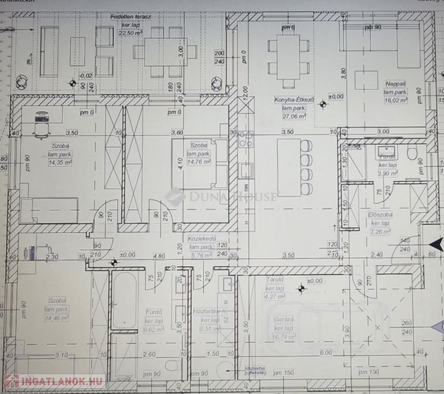 Három db lakószobái 14 m2-esek ezért kényelmes életteret biztosítanak minden korosztály számára, továbbá 2 db fürdővel és wc-vel felszerelt az ingatlan, sőt még háztartási helyiség is rendelkezésre áll.