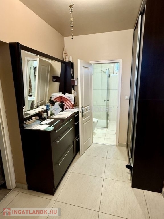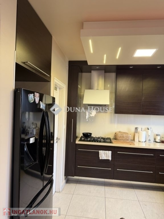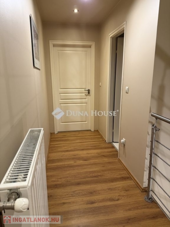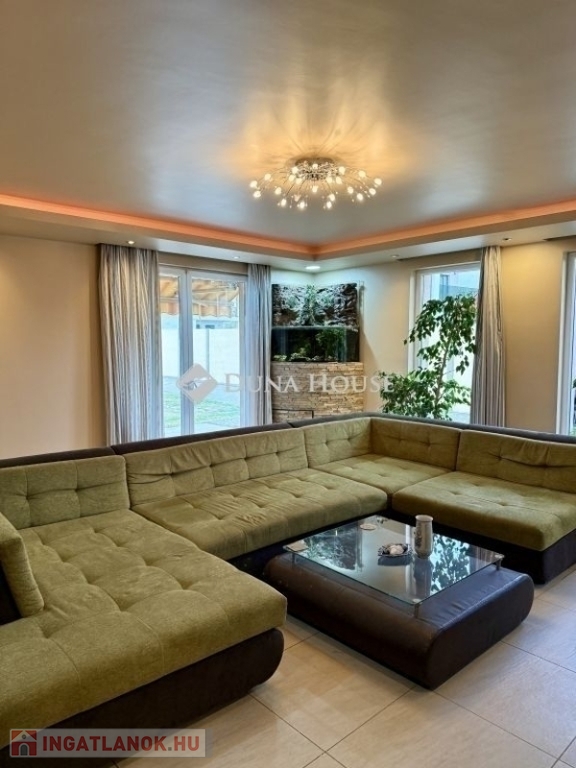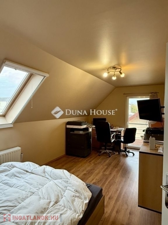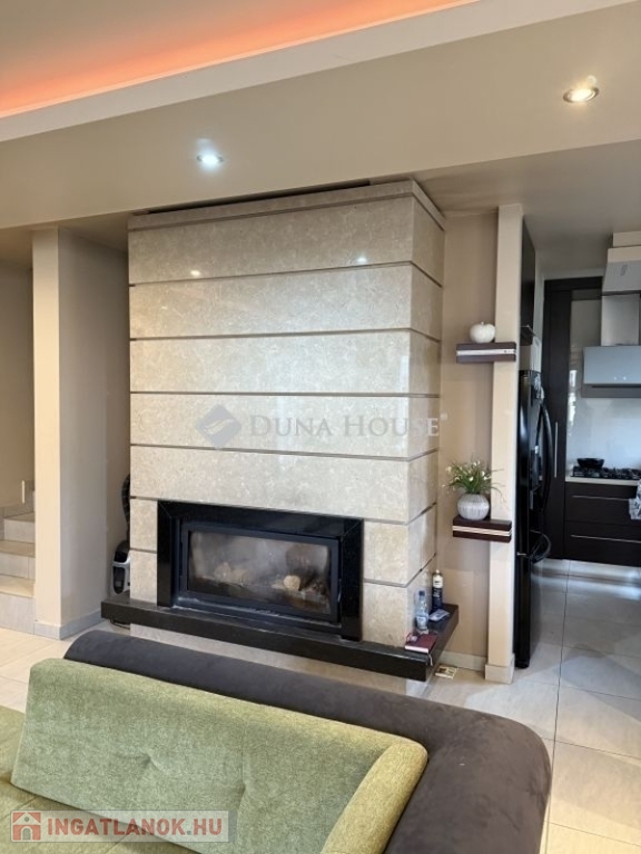 Budapest XVIII. kerületében, Almáskert családi házas, dinamikusan fejlődő részén eladó egy 164 m²-es, tégla építésű, duplakomfortos ikerházfél, amely 577 m²-es saját telekrésszel és garázzsal rendelkezik.Az ingatlan kiváló állapotú, tágas, világos terekkel és igényes, modern kialakítással várja új tulajdonosát.A ház a garázsnál kapcsolódik az ikerfélhez, ezáltal teljesen szeparált, intimitása és önállósága megmaradt.Főbb jellemzők:- Lakóterület: 164 m²- Telekrész: 577 m²- Elrendezés: amerikai konyhás nappali + 3 hálószoba + 2 fürdőszoba- Szintek: földszint + emelet- Garázs közvetlen bejárattal az előszobába- Nagy terasz árnyékolóval- Több autós beállási lehetőség az udvaronHelyiségek elosztásaFöldszint: Előszoba, Amerikai konyhás nappali + étkező, Kamra, Zuhanyzós fürdőszoba, TeraszkapcsolatEmelet: 3 hálószoba (2 gardrób helyiséggel), Háztartási helyiség, Kádas fürdőszobaMűszaki felszereltség és extrák:- Tégla falazat, dryvit szigeteléssel- Műanyag nyílászárók + szúnyogháló + árnyékolók- Cserép tetőfedés- Padlófűtés + radiátoros fűtés + kandalló- Kombicirkó kazán + klíma- Elektromos kapu, riasztórendszer- Spotvilágítás, álmennyezet, laminált padló + igényes burkolatok- Mennyezetig érő L alakú konyhabútor- Árnyékolt terasz, rendezett kertA közművek önálló mérőórákkal rendelkeznek, az ingatlan per- és tehermentes.A bútorzat megegyezés tárgyát képezi.Elhelyezkedés és környék:A környék családbarát, az utca rendezett, a környék infrastruktúrája kiemelkedő:- Buszmegálló pár perc sétára- Ferihegyi vasútállomás, 50-es villamos a közelben- Spar, gyógyszertár, szépségszalon, fitneszterem- Iskola, óvoda, orvosi rendelő, minden elérhető közelségbenEz az ingatlan ideális választás:- családoknak, akik tágas, kényelmes, jól megtervezett otthont keresnek- pároknak, akik minőségi életérzést szeretnének a városközeli, zöldövezeti környezetben,- akik kész, azonnal költözhető házat keresnek kiváló műszaki állapottal.Ez az otthon a kényelem, a tágasság és a modern megoldások tökéletes kombinációja várja új tulajdonosát Almáskert egyik legjobb utcájában.