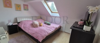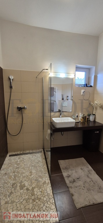 Amikor belépünk, az előszobából egy tágas, világos élettér tárul elénk. A konyha–étkező–nappali együttese a ház igazi szíve – itt zajlanak a hétköznapok reggeli indulásai, a közös vacsorák, az ünnepi pillanatok. A konyhából egy fedett teraszra léphetünk ki, ahonnan a kert látványa fogad – zöld, rendezett, hívogató. A földszinten egy külön szoba, fürdőszoba és kamra is helyet kapott, az emelet pedig két szobát és egy további fürdőt rejt – ideális elrendezés családosok számára. A ház teljes bútorzata a vételár részét képezi, így az otthon eleganciája már az első pillanattól adott.
