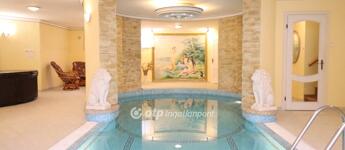 A három szintes ingatlan alsó részén található egy óriási wellness részleg, 24 nm-es medencével és külön fürdőszobával, valamint egy hobbyszoba.