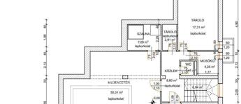 Az alsóbb szinteken került kialakításra a wellness tér, tároló helyiségek, mosókonyha, borospince, gépészet és a garázs.