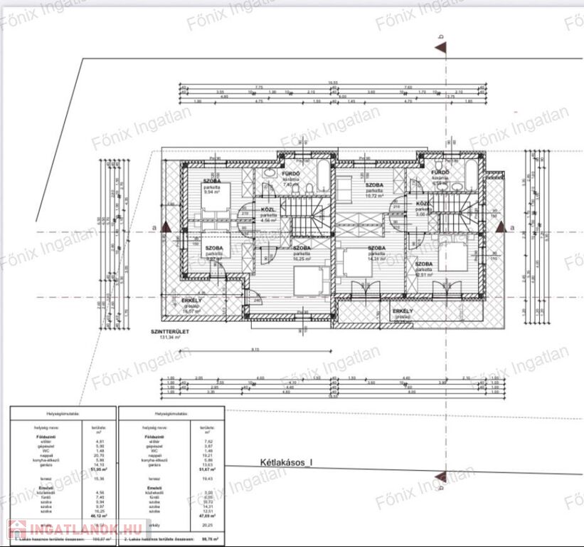100 m2-es + 19 m2-es terasszal + 20 m2-es erkéllyel,
