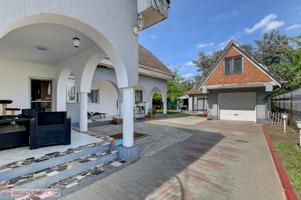 Az udvarban található két nagyméretű külön bejáratú garázs is.. Az egyikben szerelőakna van kialakítva ami plusz lehetőségeket biztosít a következő tulajdonos számára.