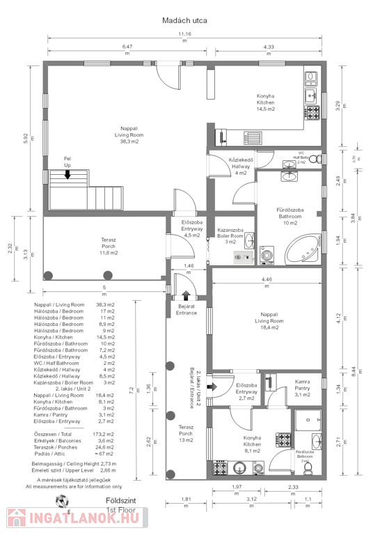 A ház azok számára is kitűnő választás, akik szülőkkel illetve nagyszülőkkel képzelik el az életüket a ház két külön bejáratú lakrészének köszönhetően, de akár bérbeadásra is tökéletesen alkalmas.