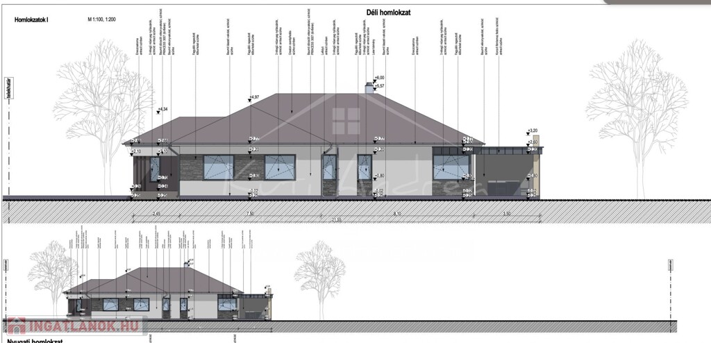 • 3 rétegű műanyag antracit nyílászárók lesznek beszerelve, melyeket antracit alumínium redőnyök fognak védeni szúnyoghálóval. Valamennyi termék a mai szabványnak megfelelnek. Távirányítóval nyitható Hörmann szekcionális garázskapu lesz beszerelve.