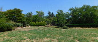 - gondozott kert különböző fákkal, bokrokkal