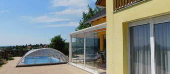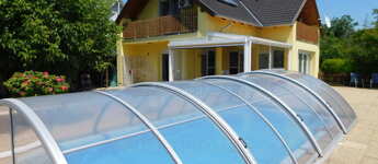 - 3,5*7 m-es, 1,5 m mélységű medence napozó terasszal, kerti kiülő, grillezési lehetőség
