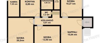 A tágas előkerttel rendelkező déli tájolású ingatlan ideális egy nagy család vagy több generáció számára, hiszen az alsó szintjén található egy nappali + 3 szoba, a konyha és egy tágas kamra, fürdőszoba + külön WC. A kazánház a lakásból, illetve kívülről is megközelíthető. A felső szinten jelenleg egy szoba található erkéllyel, de a tetőtér további része is beépíthető, így növelhető az alapterület.