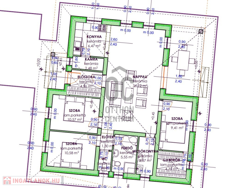 - Kétféle ingatlan méret 120-150 m2 (4 garázsos, 2 garázs nélküli)