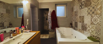 - Az egyik hálóból egy 29 m²-es, félig fedett panorámaterasz érhető el, amely teljesen intim, senki nem lát be, hangulatos, tágas és csodás kilátással rendelkezik. Ez a ház egyik legkülönlegesebb pontja.