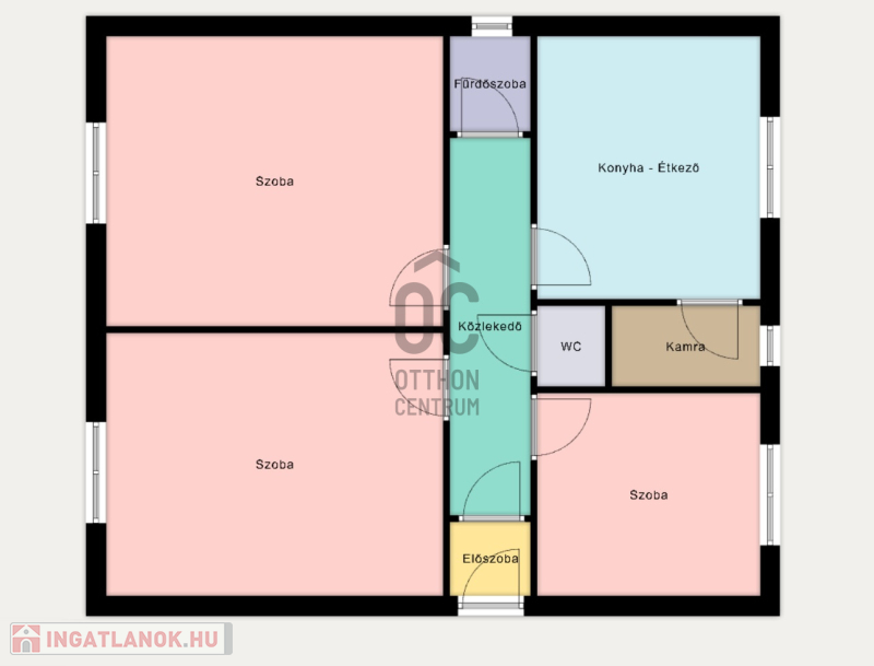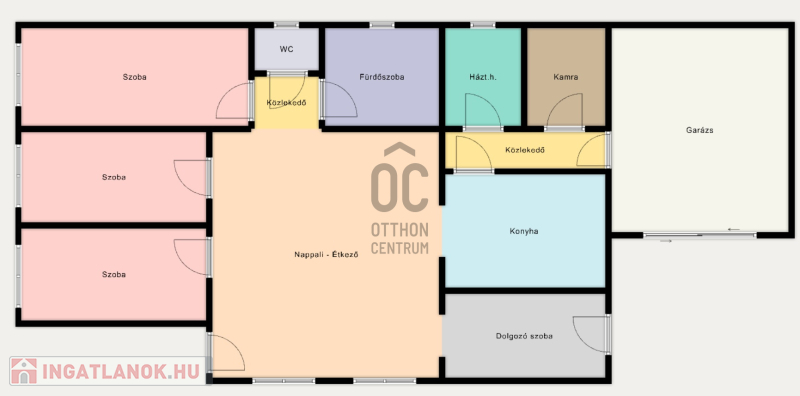 - Nappali-étkező + konyha + 3 hálószoba
