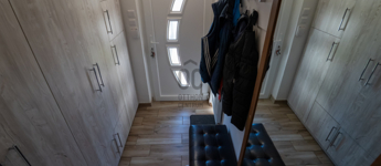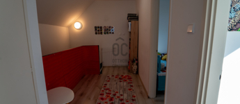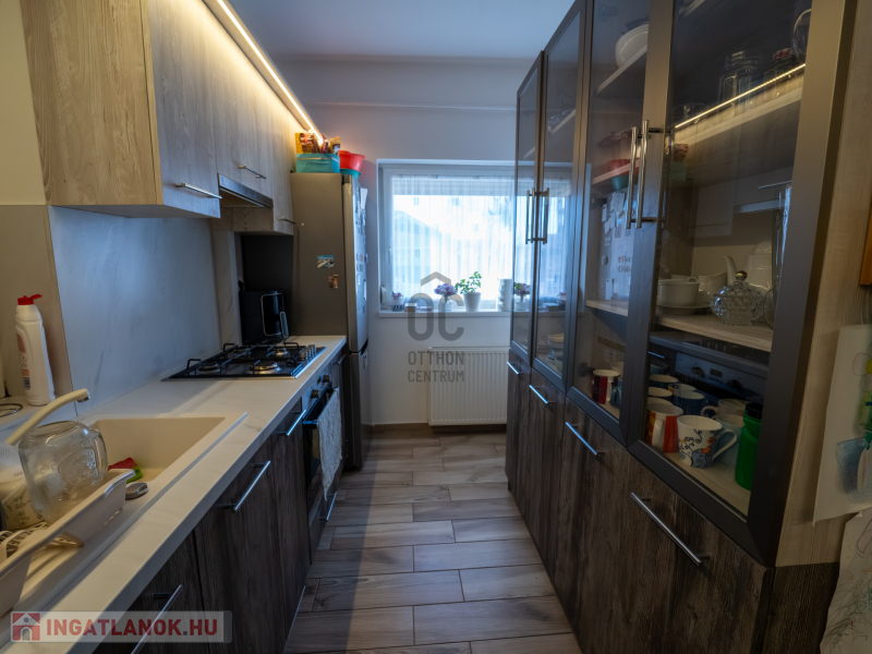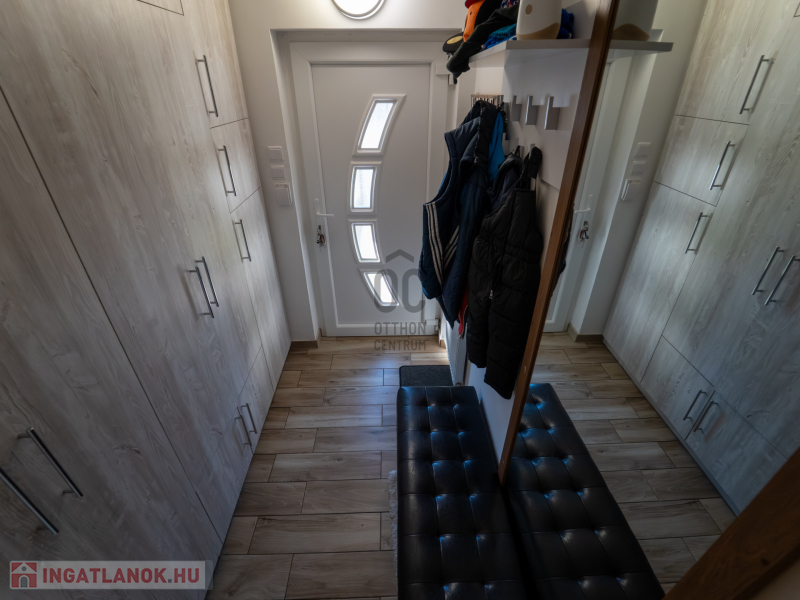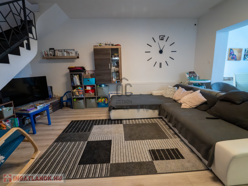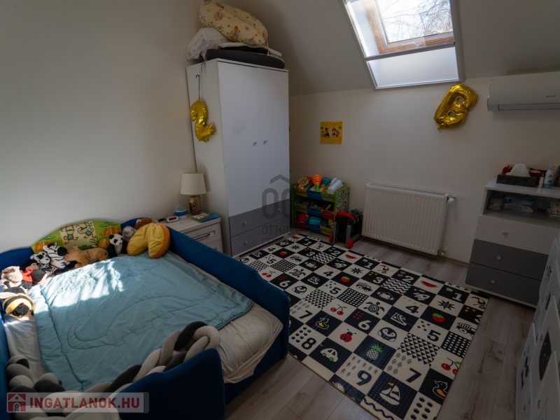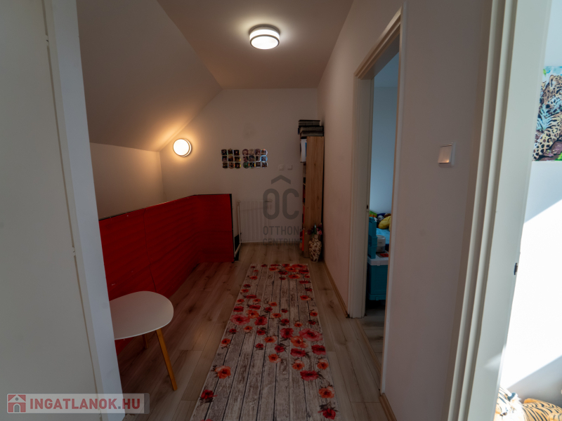A 2005-ben épült, tégla falazatú, tetőteres családi ház tágas és jól átgondolt elrendezésű. A földszinten világos nappali–étkező–konyha tér fogad, külön fürdővel és WC-vel. Az emeleten három külön nyíló szoba és egy zuhanyzós fürdőszoba biztosít kényelmes életteret akár családnak, akár otthoni munkavégzéshez.