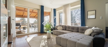A világos nappali közvetlen kapcsolatban áll a tágas, 40 m²-es terasszal,