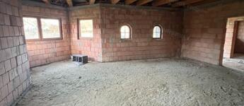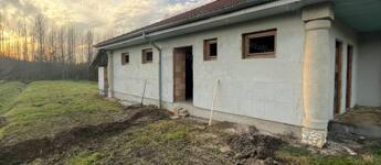 Eladó Döbröntén, a Bakonyalján, Pápától mindössze 14 km-re egy panorámás, 5547 m²-es telken álló, 210 m²-es szerkezetkész ingatlan. A telek közvetlenül az erdő mellett fekszik, így igazi bakonyi hangulat, nyugalom és természetközeli környezet várja az új tulajdonost. Az épület jelenlegi állapotából kifolyólag az elrendezés teljes mértékben az új tulajdonos ízlésére van bízva.