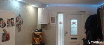 A villamoshálózat is teljesen új, 32 Amper van. Villany bluetoothos, távirányitós,fényt is lehet rajta állitani. Melegvizet villanybojler biztositja. A nappali és konyha járólapos, a szobák laminált padlóval ellátott.
